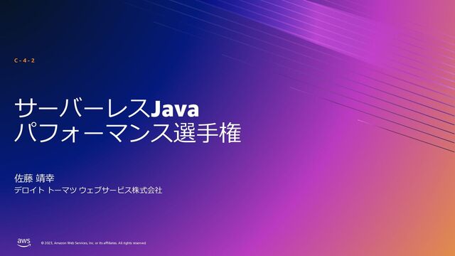rights reserved. © 2023, Amazon Web Services, Inc. or its affiliates. All rights reserved. サーバーレスJava パフォーマンス選⼿権 佐藤 靖幸 C - 4 - 2 デロイト トーマツ ウェブサービス株式会社