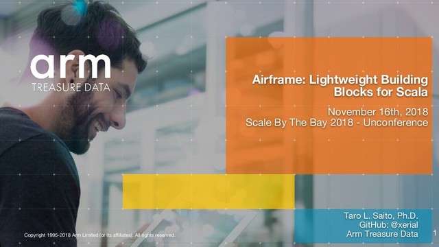 Taro L. Saito, Ph.D. GitHub: @xerial Arm Treasure Data Airframe: Lightweight Building Blocks for Scala November 16th, 2018 Scale By The Bay 2018 - Unconference 1