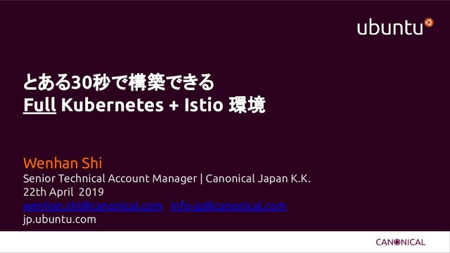 とある30秒で構築できる Full Kubernetes + Istio 環境 Wenhan Shi Senior Technical