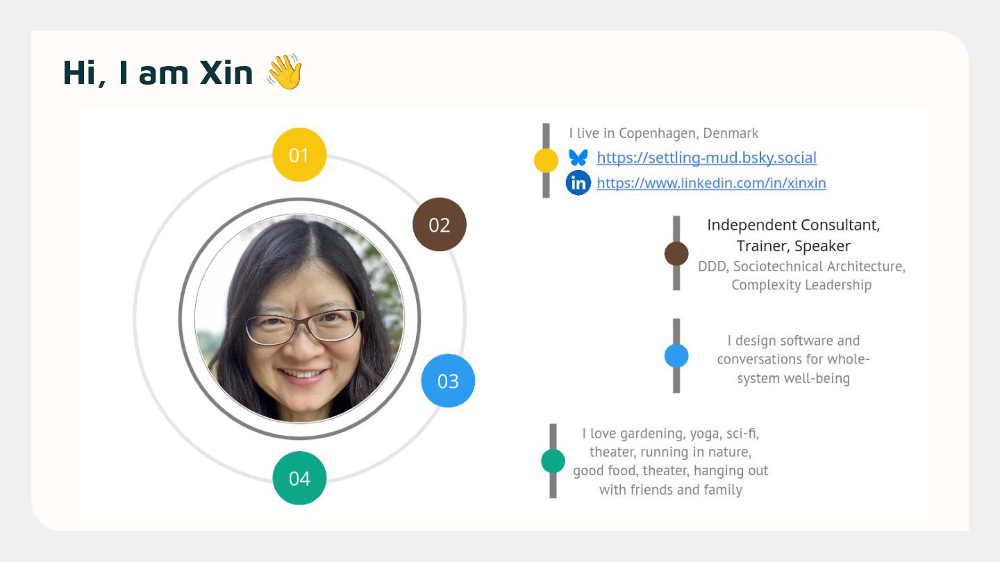 We've been looking for a while to bring Xin Yao to speak on one of our favorite topics: Sociotechnical Architecture, or how humans and technology are intrinsically linked. Don't worry, you won't get another round of Conway's Law, but rather a dive into the organizational runtime — the behavioral side of sociotechnical work. The messy, everyday human interactions that make or break software architecture, org design, agile alignment, and complex collaboration. What does it mean to architect for coherence and flow in the midst of all this? We therefore asked Xin to open the conference with the opening keynote, and she said yes—much to our delight. If you're already curious to learn more, feel free to search for Xin Yao and check out her previous videos; you'll find them worthwhile. We're doing your organizational intelligence homework for you in advance. But don't worry about having seen everything before the conference—this will be a brand new talk just for us.