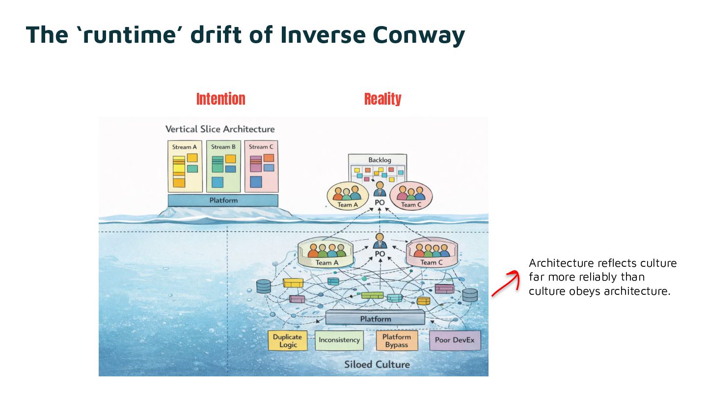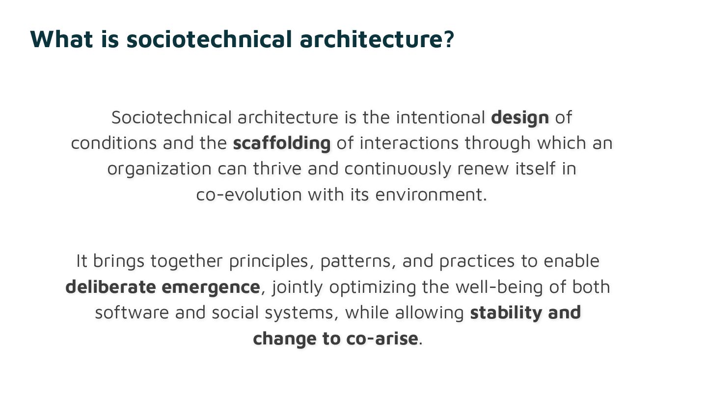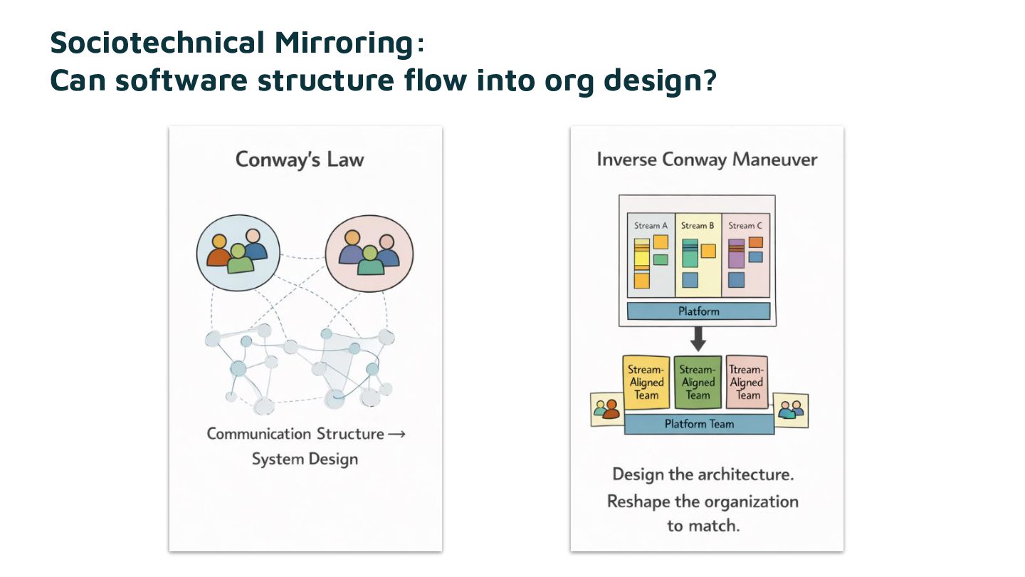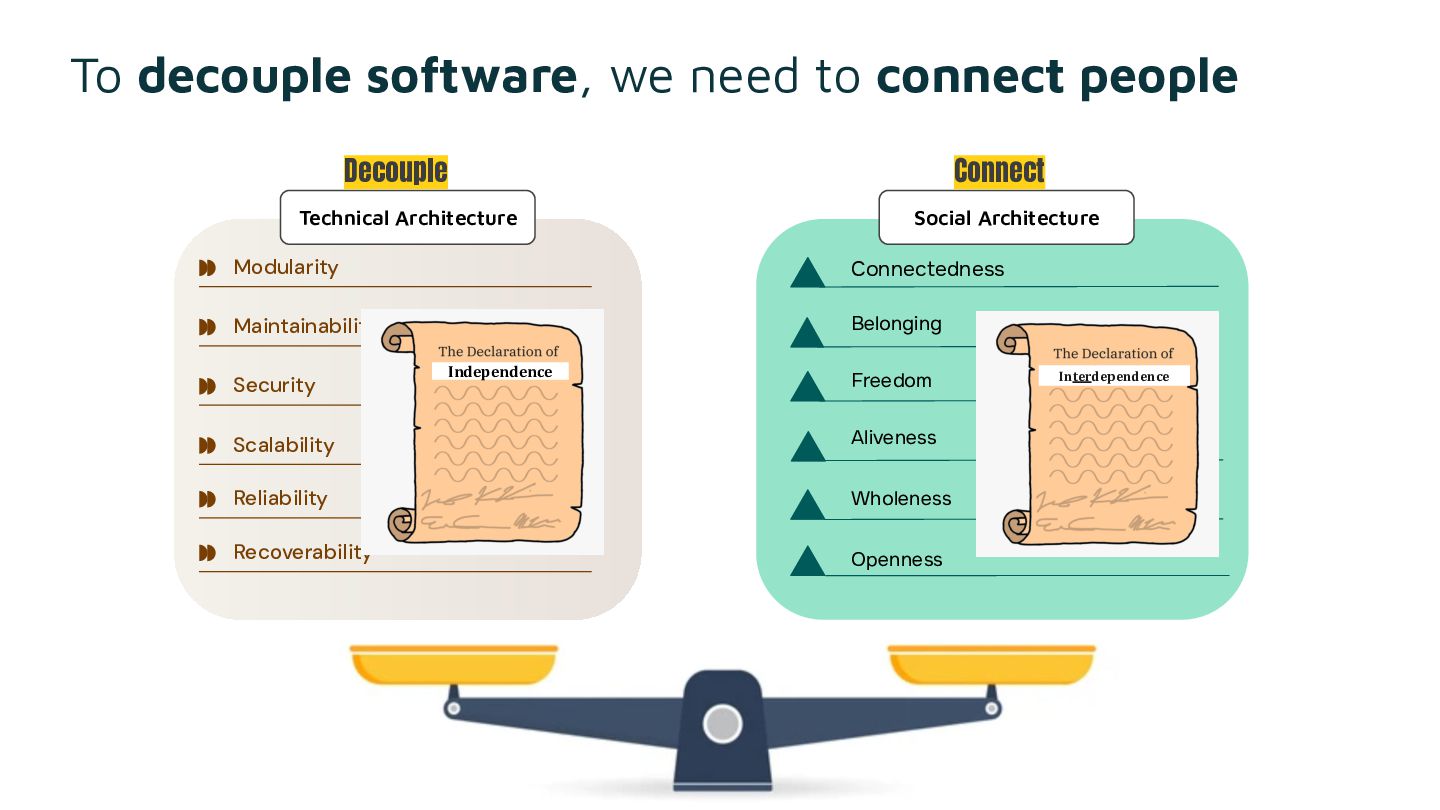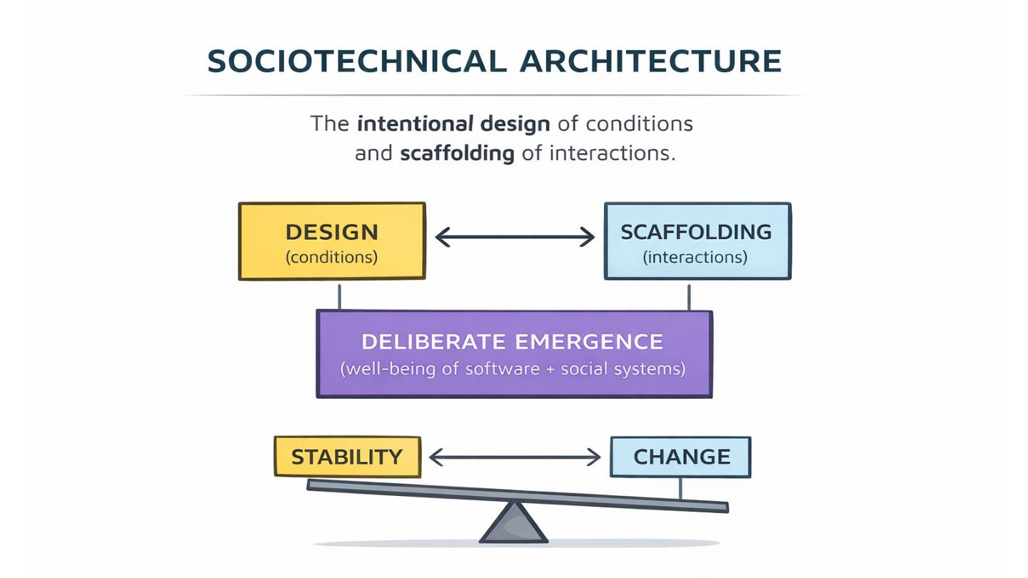 Sociotechnical architecture is the practice of designing for both. Decouple the software. Connect the people. And attend to what falls through the cracks of every dashboard. In the age of AI, this tension sharpens: the conversations that sustain shared understanding and ownership risk getting squeezed out by the pressure to move faster.