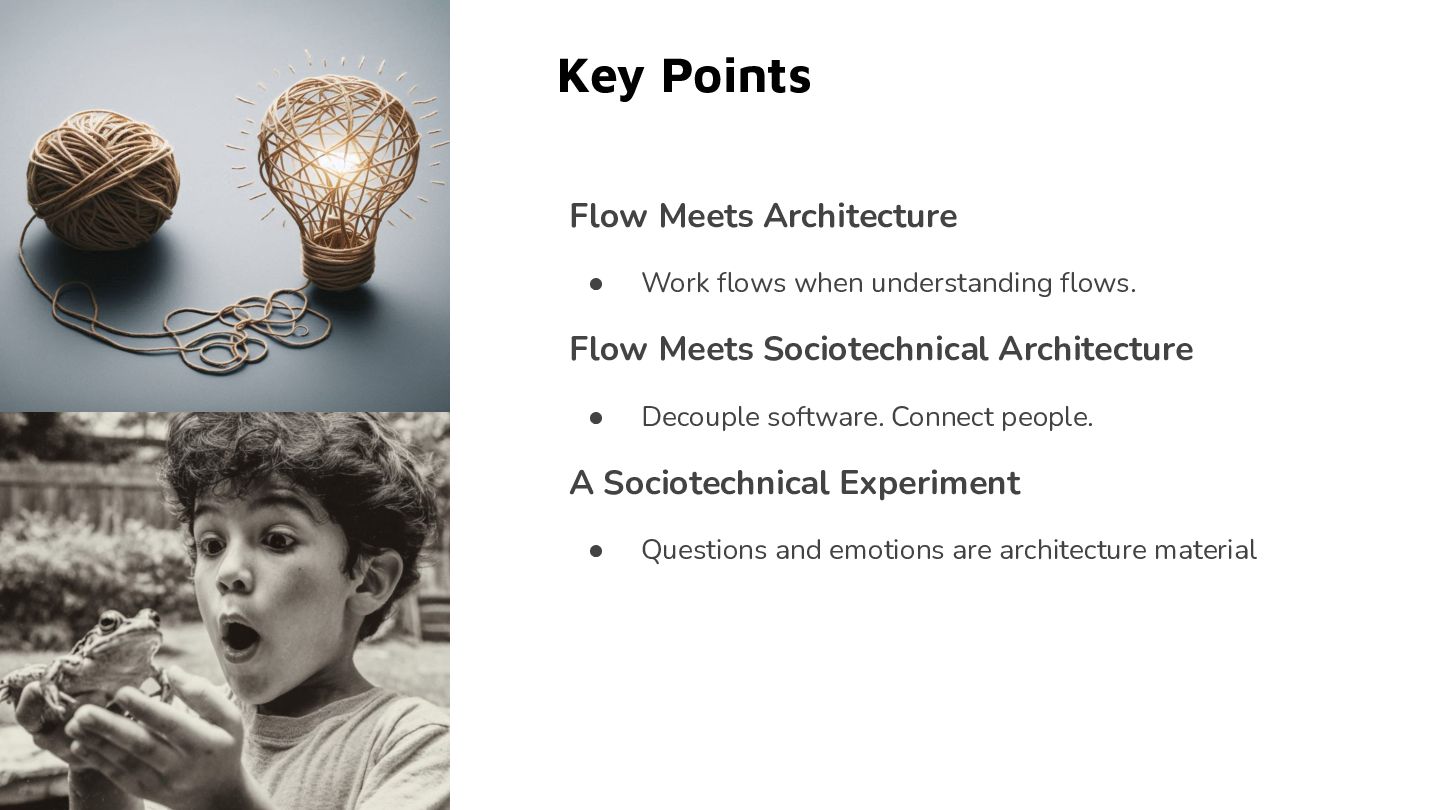 - What it means to design for flow at every level: software, teams, organizations, and yourself