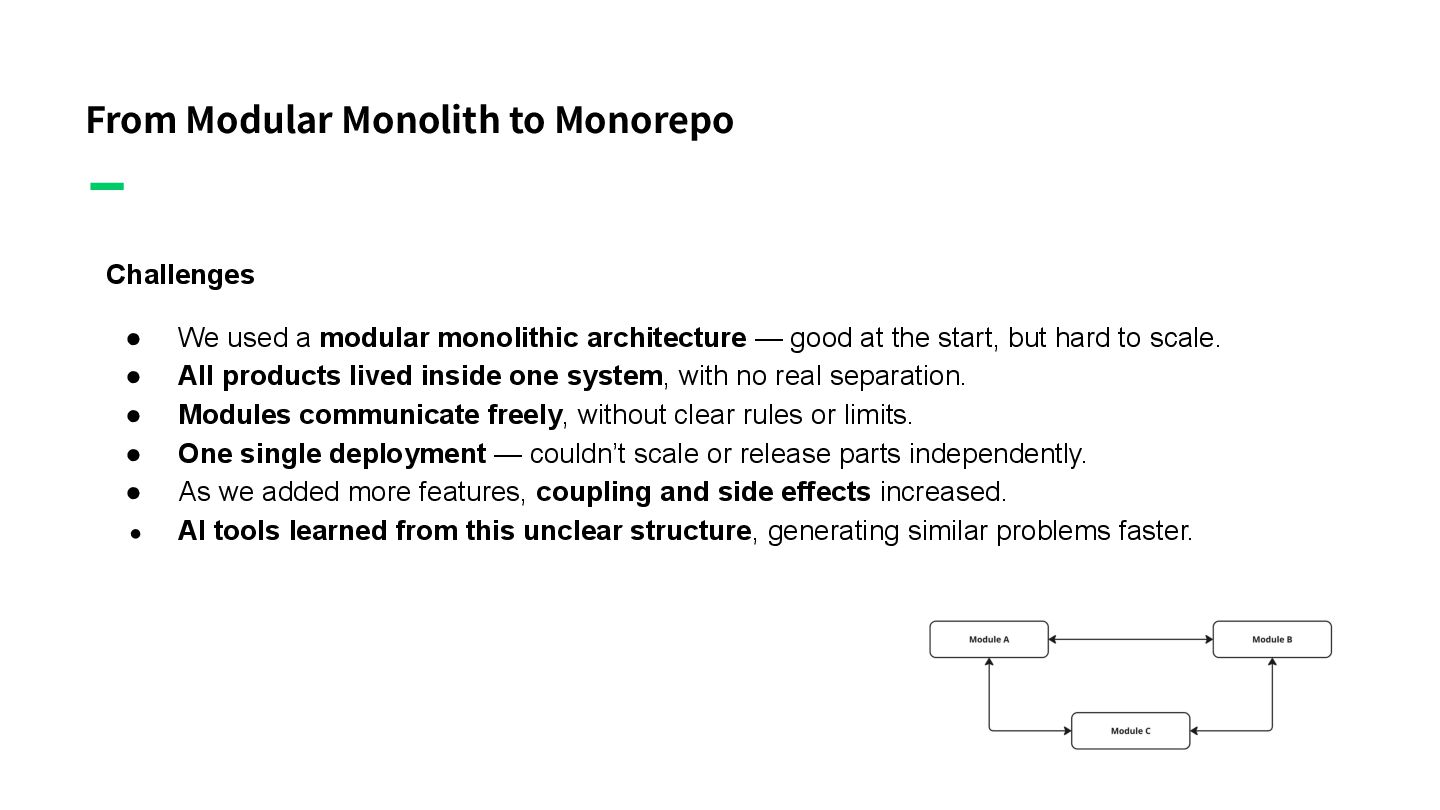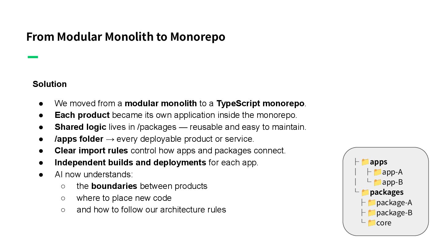 As NEWT grows, its TypeScript backend is evolving from a traditional monolith into a modular, clean, and AI-assisted architecture. This transformation aims to boost development speed, maintain quality, and enable teams to release more features in parallel—laying the foundation for a truly AI-Driven Development era