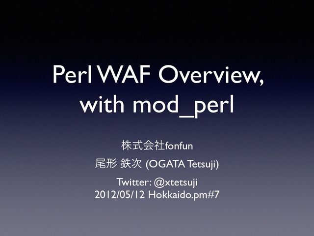 Perl WAF Overview, with mod_perl - Hokkaido.pm#7 #hokkaidopm