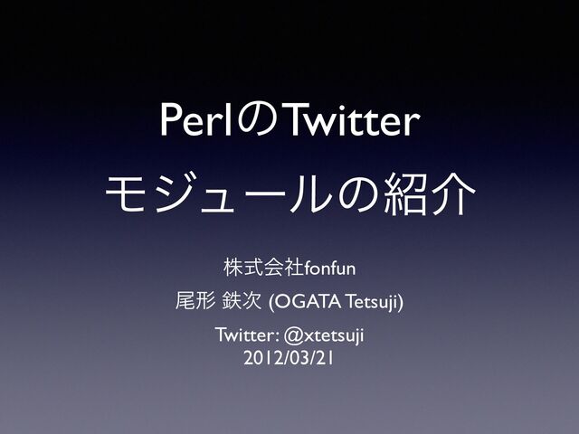 PerlͷTwitter Ϟδϡʔϧͷհ גࣜձࣾfonfun ඌܗ మ࣍ (OGATA Tetsuji) Twitter: @xtetsuji 2012/03/21