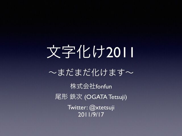 จࣈԽ͚2011 ʙ·ͩ·ͩԽ͚·͢ʙ גࣜձࣾfonfun ඌܗ మ࣍ (OGATA Tetsuji) Twitter: @xtetsuji 2011/9/17