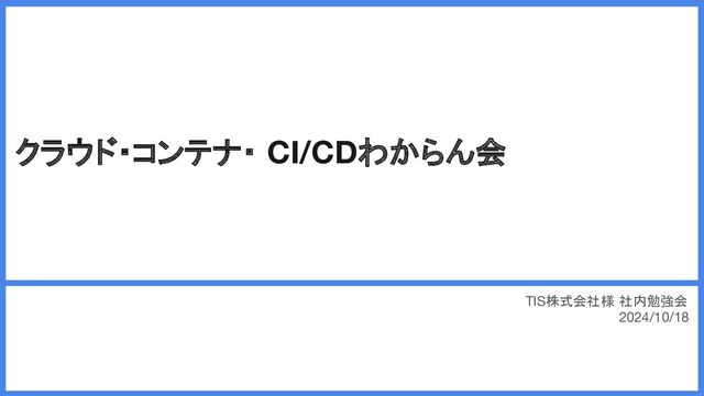 クラウド・コンテナ・ CI/CDわからん会 TIS株式会社様 社内勉強会 2024/10/18