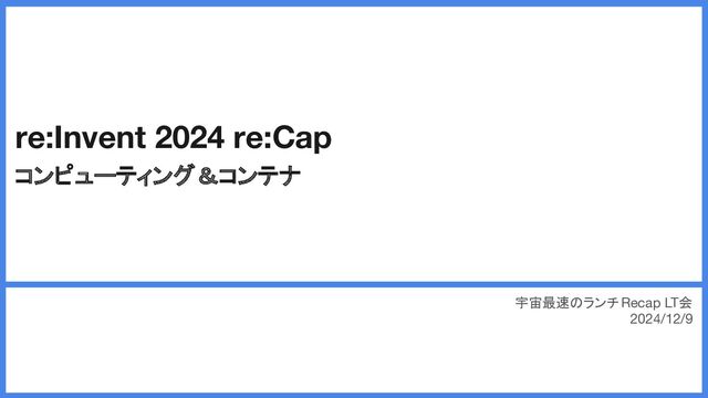 re:Invent 2024 re:Cap コンピューティング&コンテナ 宇宙最速のランチRecap LT会 2024/12/9