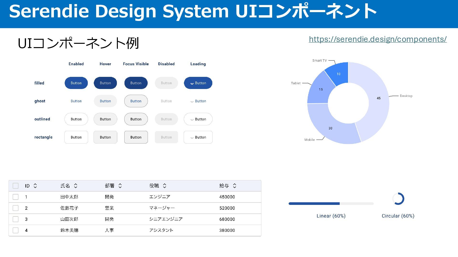 UIコンポーネント例 Serendie Design System UIコンポーネント https://serendie.design/components/