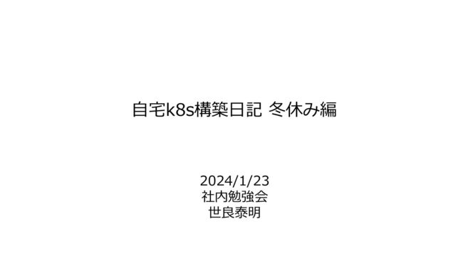 自宅k8s構築日記 冬休み編 2024/1/23 社内勉強会 世良泰明