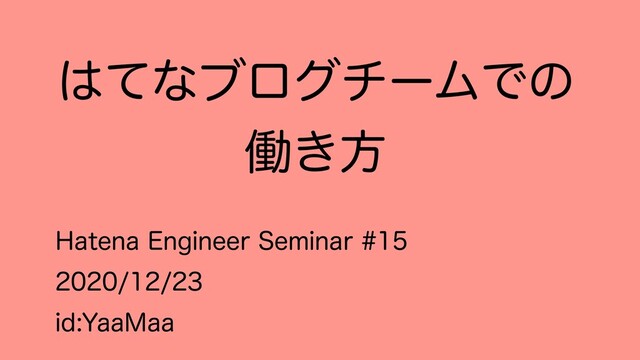 ͯͳϒϩάνʔϜͰͷ ಇ͖ํ )BUFOB&OHJOFFS4FNJOBS JE:BB.BB