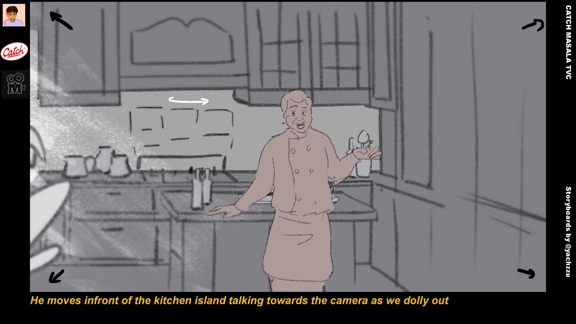 T V C S t o r y b o a r d s b y @ y a c h z z u H e mo v e s i n f r o n t o f t h e k i t c h e n i s l a n d t a l k i n g t o w a r d s t h e c a me r a a s w e d o l l y o u t