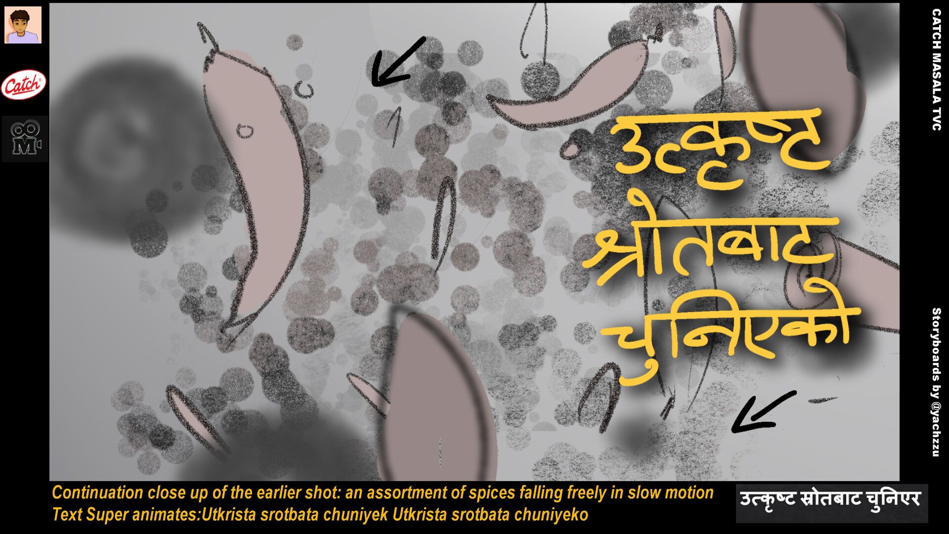 T V C S t o r y b o a r d s b y @ y a c h z z u C o n t i n u a t i o n c l o s e u p o f t h e e a r l i e r s h o t : a n a s s o r t me n t o f s p i c e s f a l l i n g f r e e l y i n s l o w mo t i o n T e x t S u p e r a n i ma t e s : U t k r i s t a s r o t b a t a c h u n i y e k U t k r i s t a s r o t b a t a c h u n i y e k o