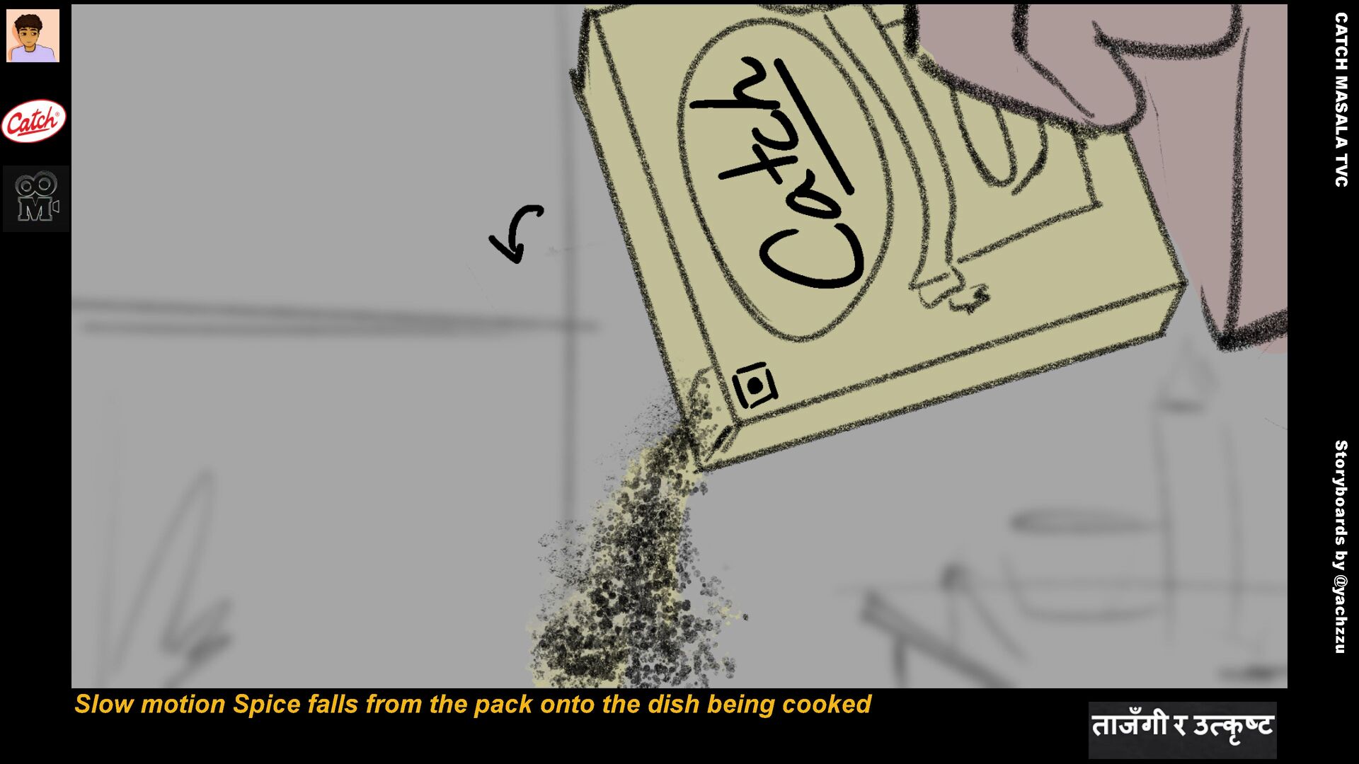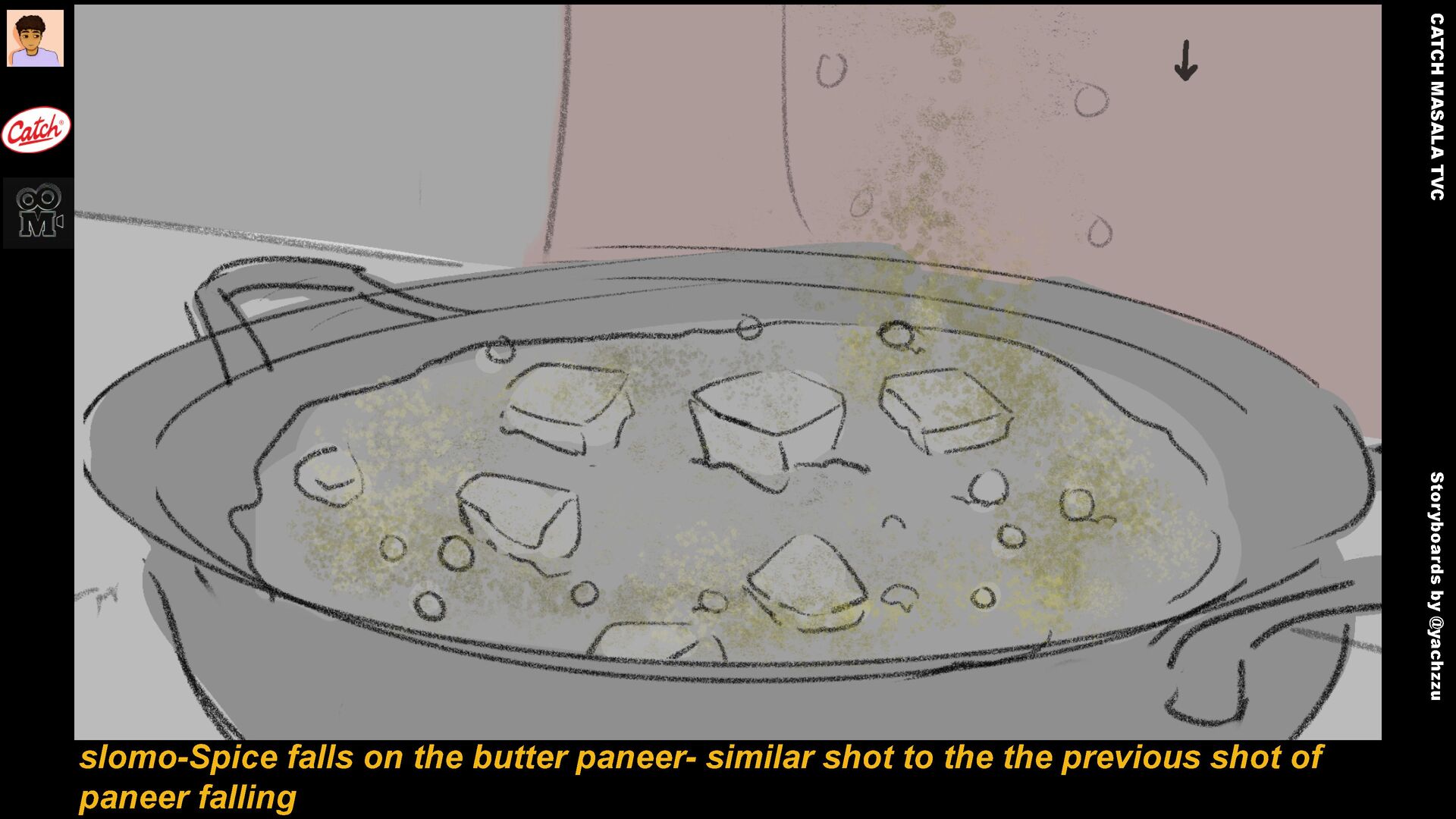 T V C S t o r y b o a r d s b y @ y a c h z z u S l o w mo t i o n S p i c e f a l l s f r o m t h e p a c k o n t o t h e d i s h b e i n g c o o k e d