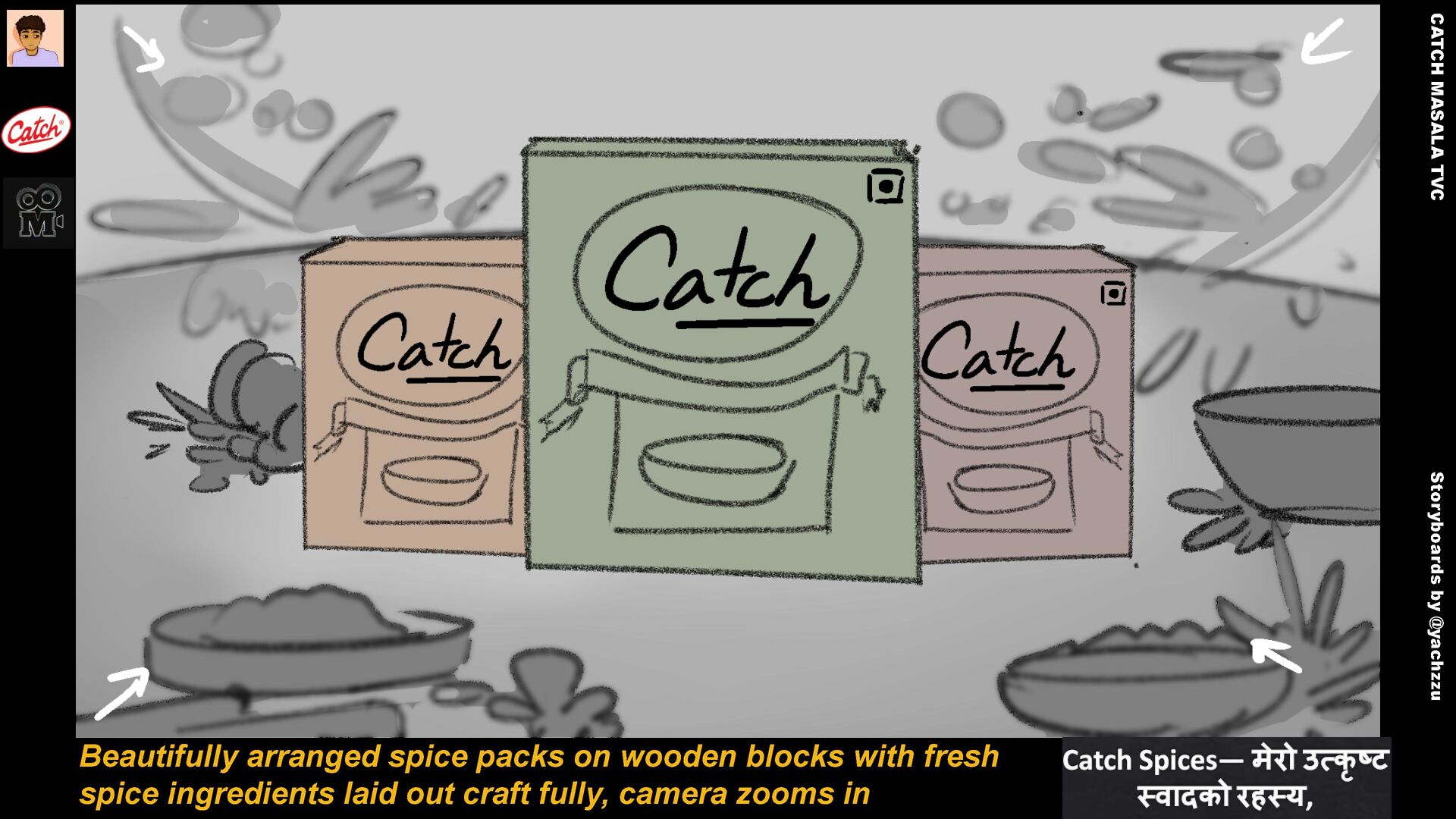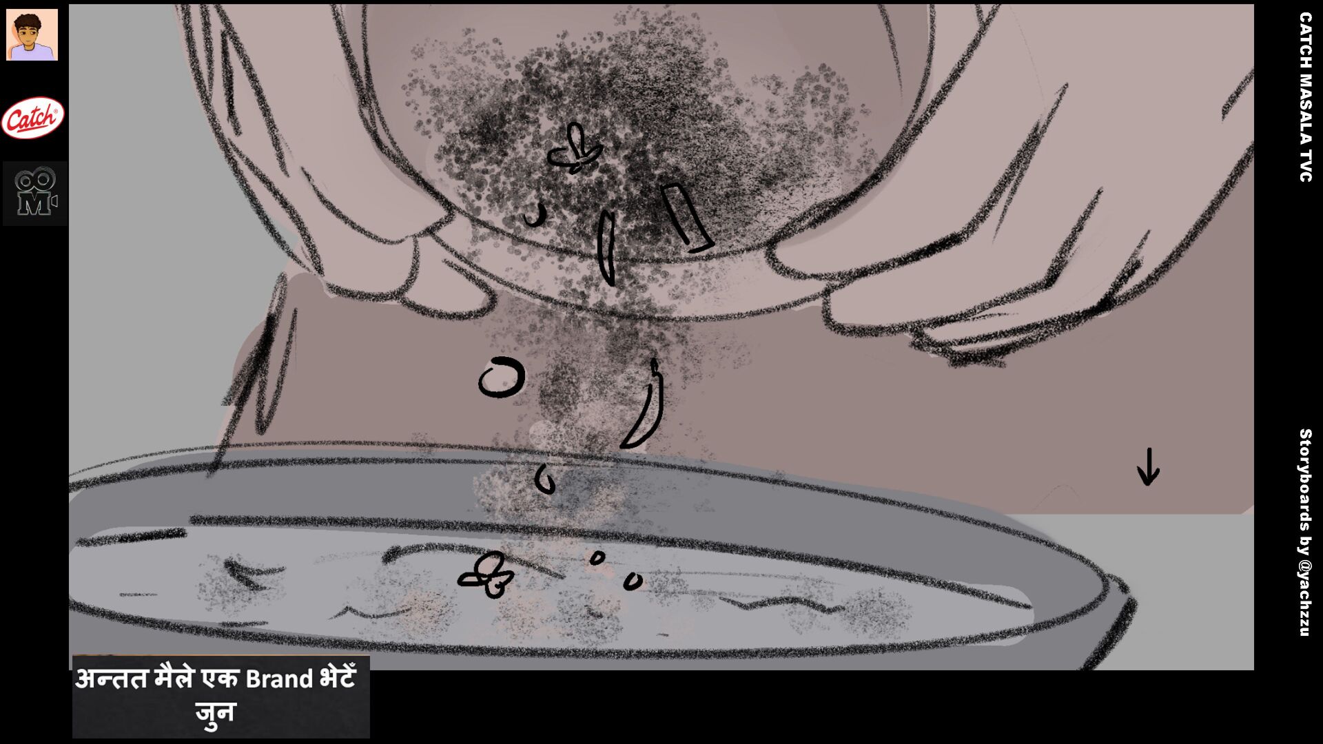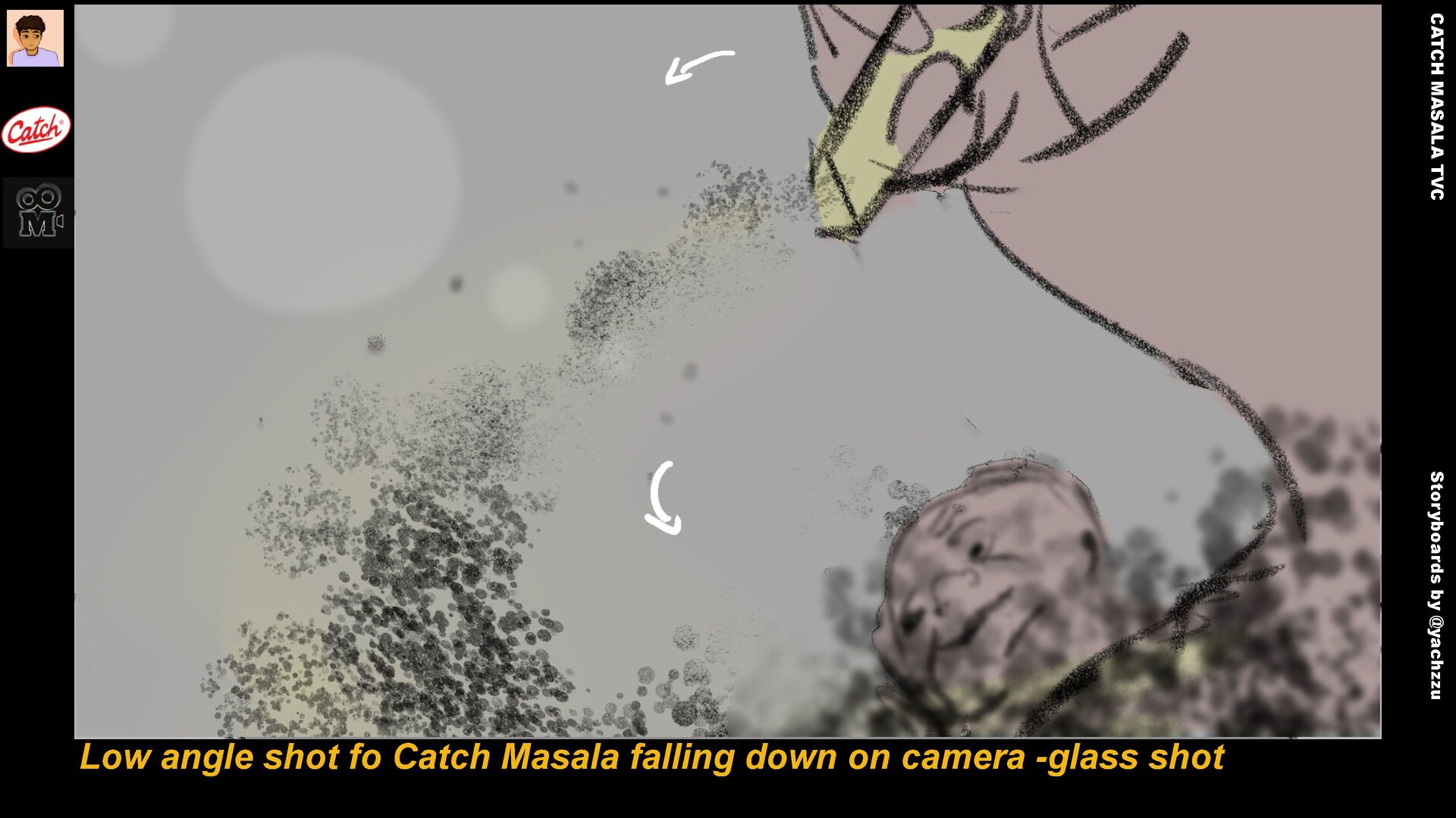 T V C S t o r y b o a r d s b y @ y a c h z z u L o w a n g l e s h o t f o C a t c h Ma s a l a f a l l i n g d o w n o n c a me r a - g l a s s s h o t