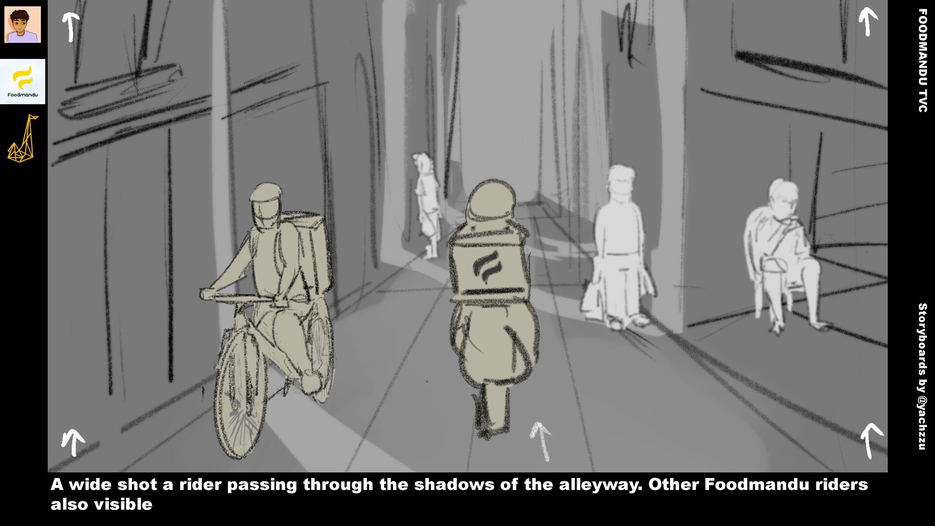 o r y b o a r d s b y @ y a c h z z u A wi d e s h o t a r i d e r p a s s i n g t h r o u g h t h e s h a d o ws o f t h e a l l e y wa y . Ot h e r F o o d ma n d u r i d e r s a l s o v i s i b l e