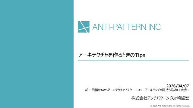 © 2026 Anti-Pattern Inc. All rights reserved. アーキテクチャを作るときのTips 2026/04/07 於︓⽬指せAWSアーキテクチャマスター︕