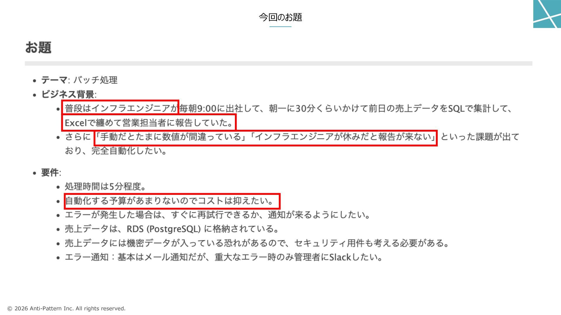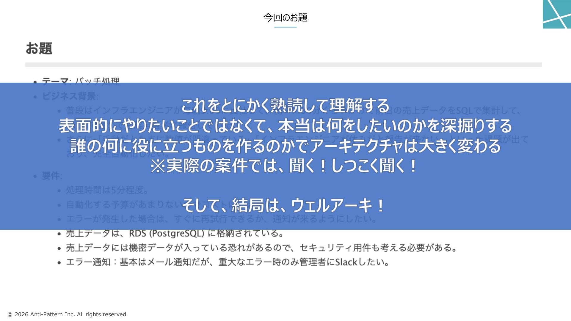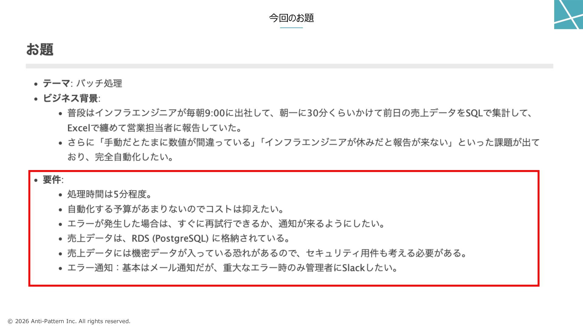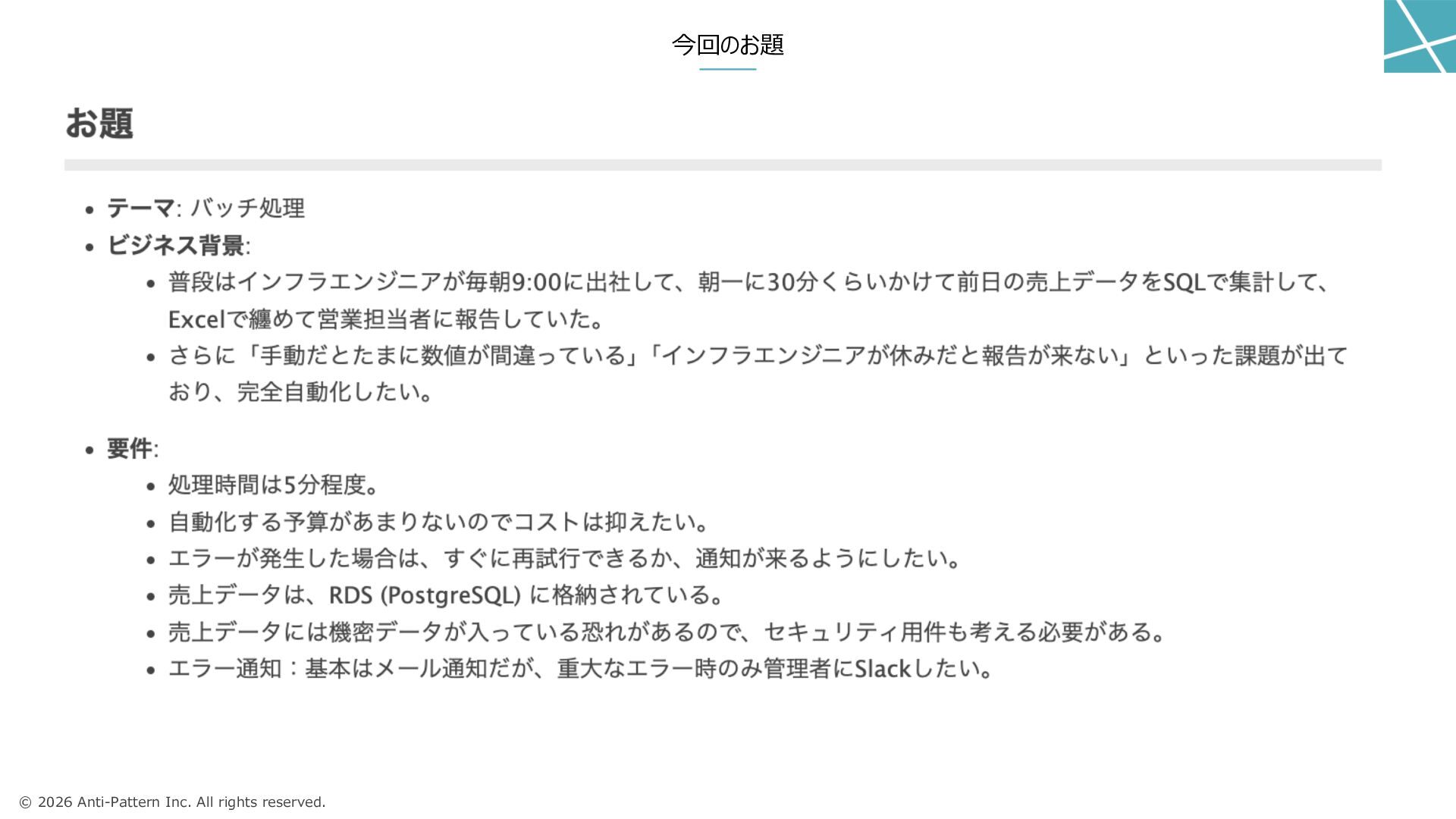 © 2026 Anti-Pattern Inc. All rights reserved. 今回のお題