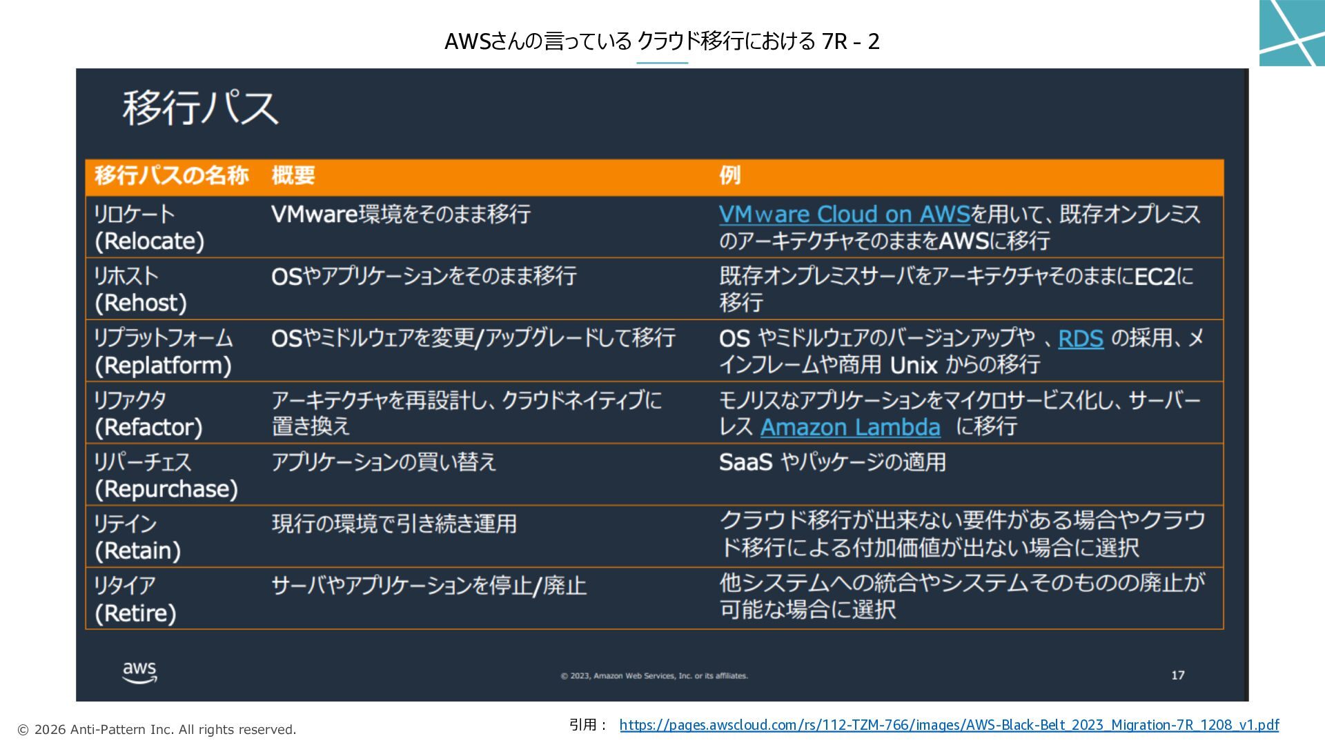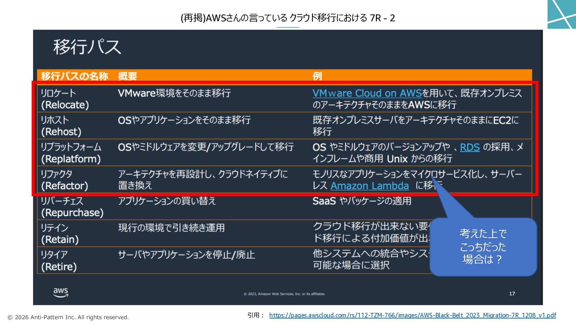 © 2026 Anti-Pattern Inc. All rights reserved. (再掲)AWSさんの⾔っている クラウド移⾏における 7R