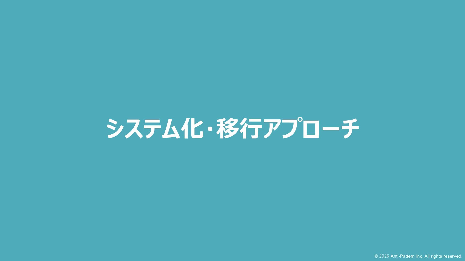 © 2026 Anti-Pattern Inc. All rights reserved. システム化・移⾏アプローチ