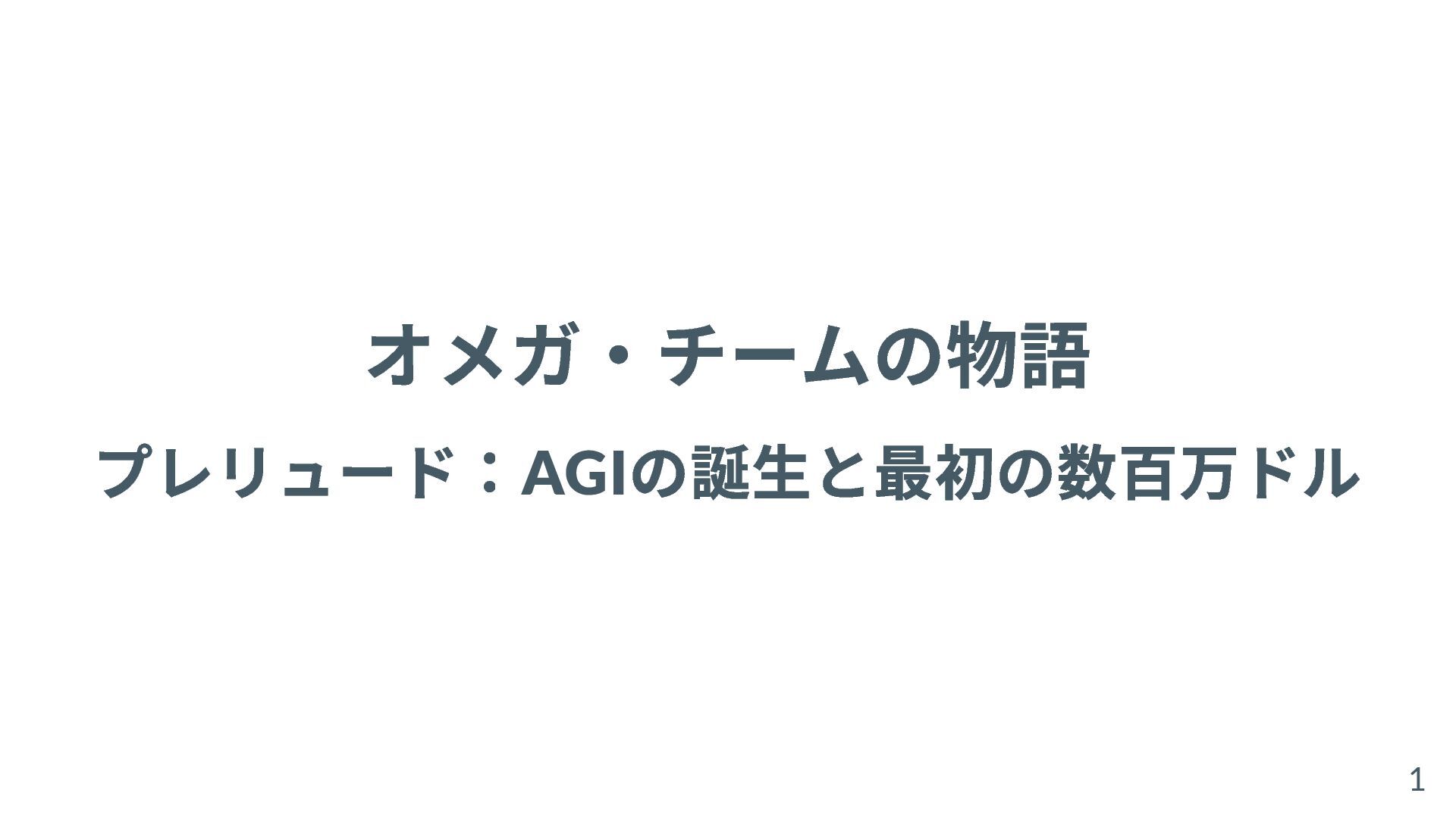 オメガ・チームの物語 プレリュード:AGI の誕生と最初の数百万ドル 1