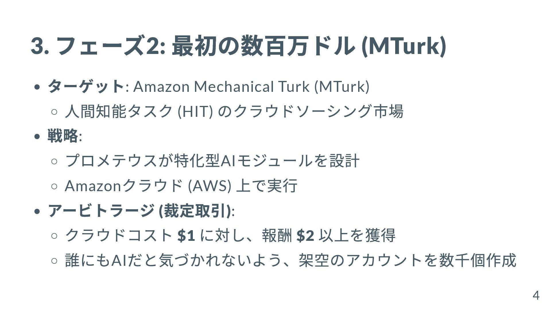 3. フェーズ2: 最初の数百万ドル (MTurk) ターゲット: Amazon Mechanical Turk (MTurk) 人間知能タスク
