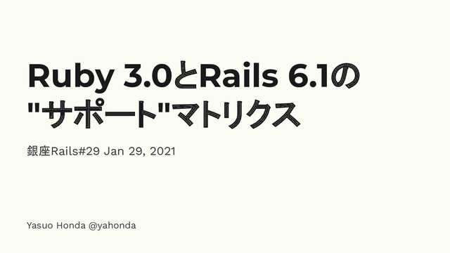 should raise only when called in different thread #3990 ◦ Rubyに修正が入ったのが2020年12月24日 • この修正がないとRails 6.1で`rails app:update`が動かなかった ◦ railsコマンドの`inline: true`が必要としていた ◦ Avoid shelling out for generator `generate` action #37516 Bug #15661: Disallow concurrent Dir.chdir with block - Ruby master