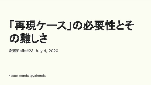 銀座Rails#23 July 4, 2020 Yasuo Honda @yahonda 「再現ケース」の必要性とそ の難しさ