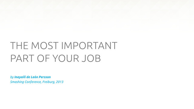 1. THE MOST IMPORTANT PART OF YOUR JOB by Inayaili de