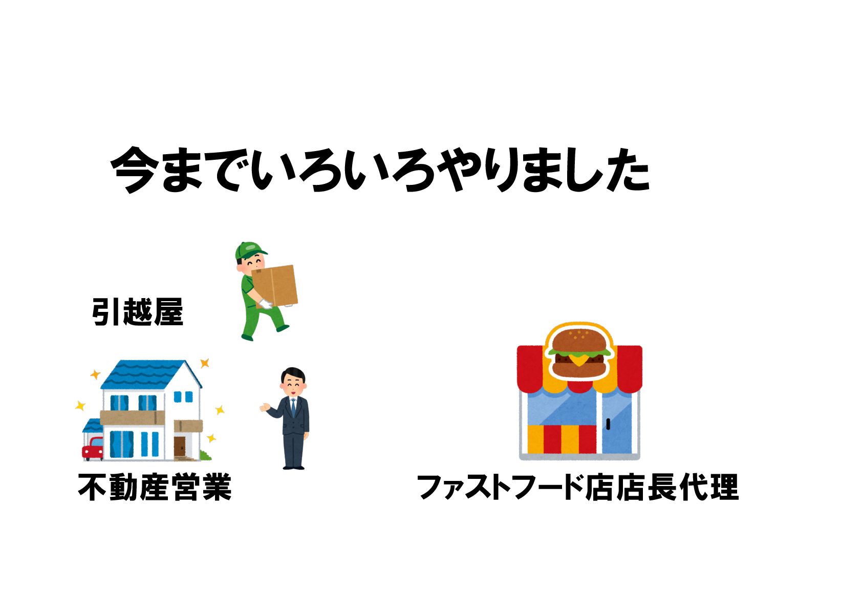 今までいろいろやりました 引越屋 ファストフード店店長代理 不動産営業
