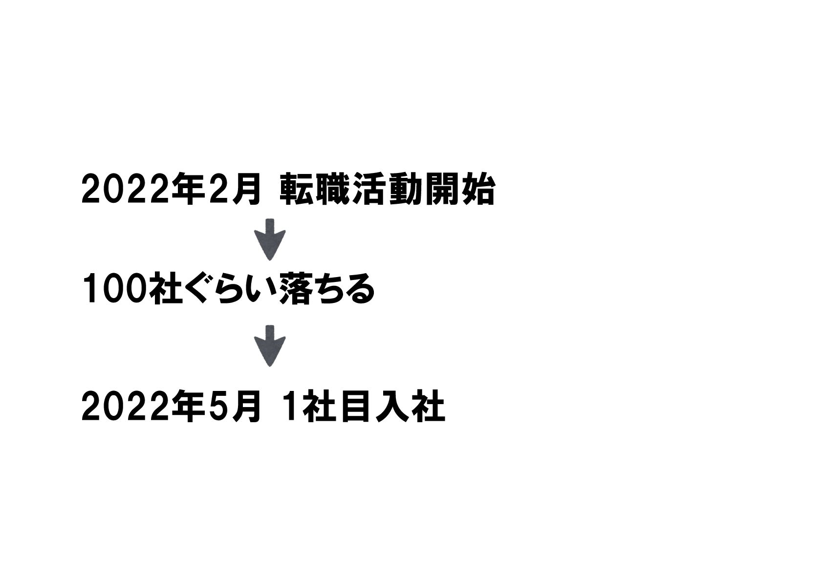 2022年2月 転職活動開始 100社ぐらい落ちる 2022年5月 1社目入社