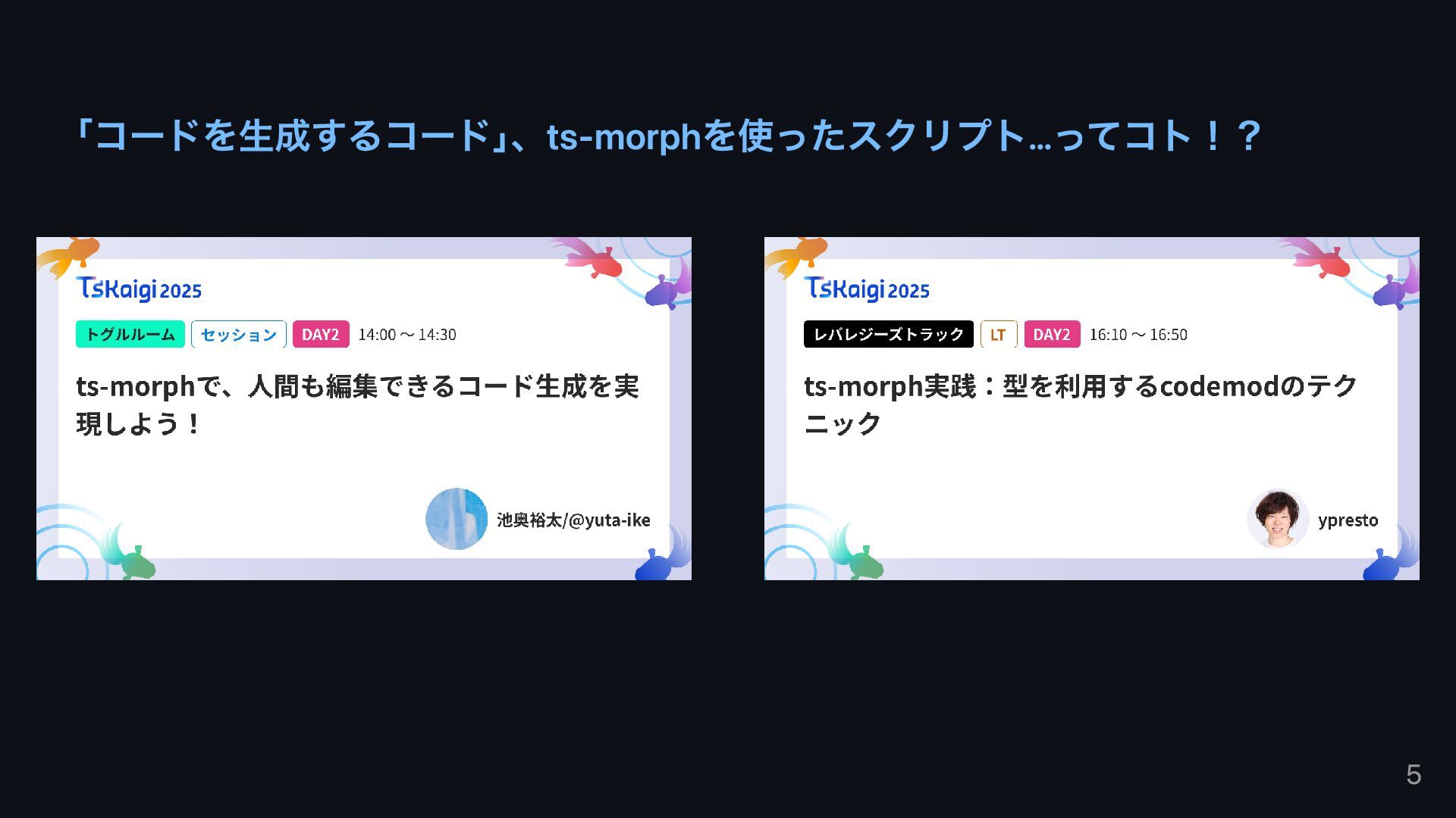 「コードを生成するコード」 、ts-morphを使ったスクリプト…ってコト!? 5