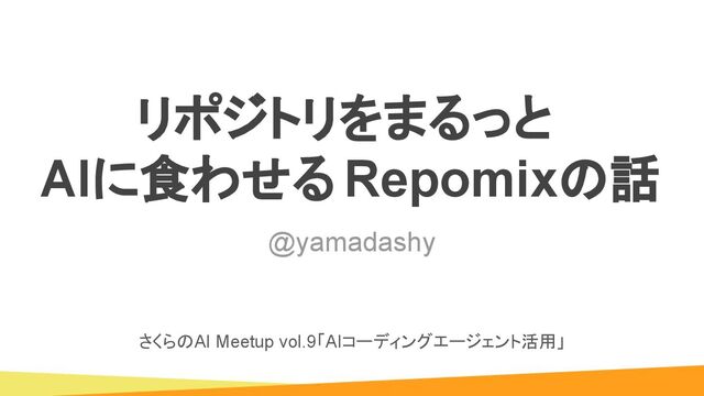 GitHubなどのコードリポジトリを1つのファイルにまとめてAIに解析させる「Repomix」の概要と使い方を解説した資料です。