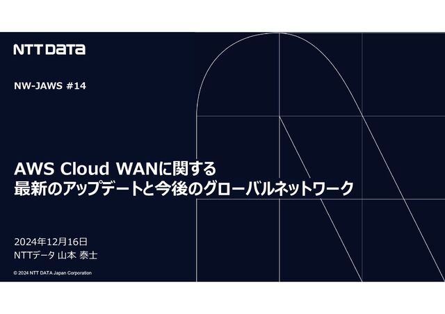 Taishi) NTTデータ / テクニカルリード(ネットワーク) • 金融機関向けの仮想アプライアンスを介したハイブリッドクラウド接続や AWS / GCPのマルチクラウド接続のネットワーク構築 • クラウドネットワーク人財育成の社内研修 など • JANOG 53.5 Meeting 登壇 • AWS Networking RoadShow Gameday 優勝など 自己紹介 @yamamototis1105 https://yamamototis1105. hatenablog.com/ ※ ※ ※ 投稿内容は個人の意見であり、組織を代表するものではありません 業務 今年度の活動