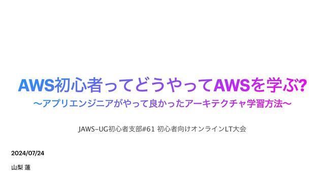AWSॳ৺ऀͬͯͲ͏ͬͯAWSΛֶͿ? ࢁས ࿇ ʙΞϓϦΤϯδχΞ͕ͬͯྑ͔ͬͨΞʔΩςΫνϟֶशํ๏ʙ JAWS-UGॳ৺ऀࢧ෦#61 ॳ৺ऀ͚ΦϯϥΠϯLTେձ 2024/07/24