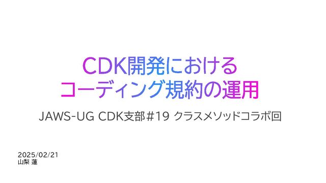 2025/02/21 山梨 蓮 JAWS-UG CDK支部#19 クラスメソッドコラボ回