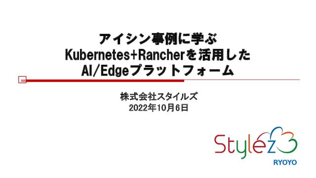 布 ・Harborの構築 ・Harborのユーザー管理 ・コンテナイメージプロ キシー ・コンテナイメージのレ プリケーション ▪Kubernetesで使うコン テナイメージ ・作り方 ・注意点 ・ヘルスチェック ▪カメラ等のDevice ・コンテナからカメラ Deviceを接続する ・コンテナからGPIOを 操作する ▪コンテナのデプロイ ・Fleetコマンドの基本 ・GitOpsの基本 ・RancherからGitOps設 定 ・ローリングアップデー ト ▪GitLabでのDockerイメ ージ自動ビルド ・GitLab Runnerのイン ストール ・GitLabへのRunnerの登 録 ・.gitlab-ci.yamlの基本 ・.gitlab-ci.yamlのコマン ド ・dockerイメージのビル ドとpush ▪GitLabとRunner ・リポジトリへの組み込 み連携 ▪Triton Inferenceサーバ ー ・Inferenceサーバーの基 礎 ・モデルの導入方法 ・コンテナへの組み込み ・モデルの切り替え ・メトリックスの取得 ▪複数のアプリケーショ ンを連携させる ・Pythonフレームワーク をコンテナイメージに組 み込む ▪K3Sのログ管理 ・Rancherによるログ収 集 ・efkによるログの集計 と表示 ▪Kubernetesのリソース 監視 ・監視の基本 ・Prometheusエクスポ ーター ・CPU、メモリー、Disk 監視 ・コンテナのパフォーマ ンス監視 ▪Kubernetesのユーザー 管理 ・RancherでのID管理 ・Rancherプロジェクト の管理 ▪その他のツール ・k9s ・Kustomize ・Helmfile ・k3d ・k3ai ・VSCode ・kpt ▪Kubernetesで動かすツ ール類 ・Minio(S3互換) ・GitLab Runner ・Harbor(DockerRegistry 互換) ・CoreDNS ネットワークと イメージ管理 コンテナー イメージビルド CI/CD パイプライン 推論サーバー について Kubernetes ログ、リソース 周辺ツール紹介