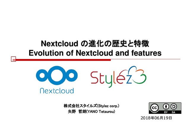 Nextcloud の進化の歴史と特徴 Evolution of Nextcloud and features 株式会社スタイルズ(Stylez corp.) 矢野