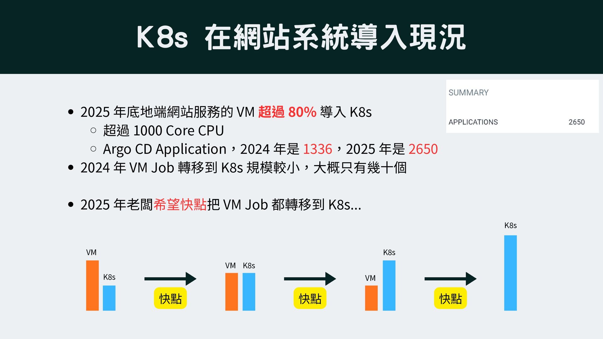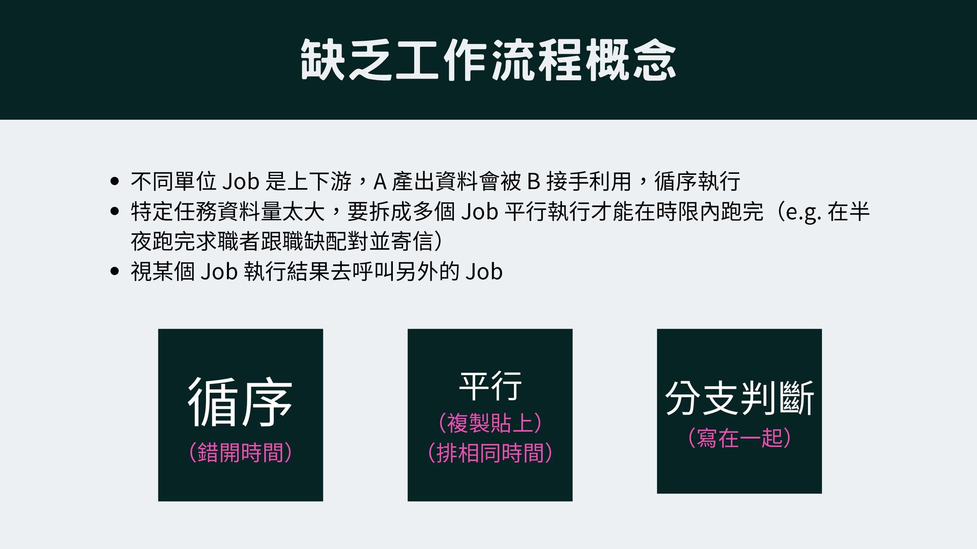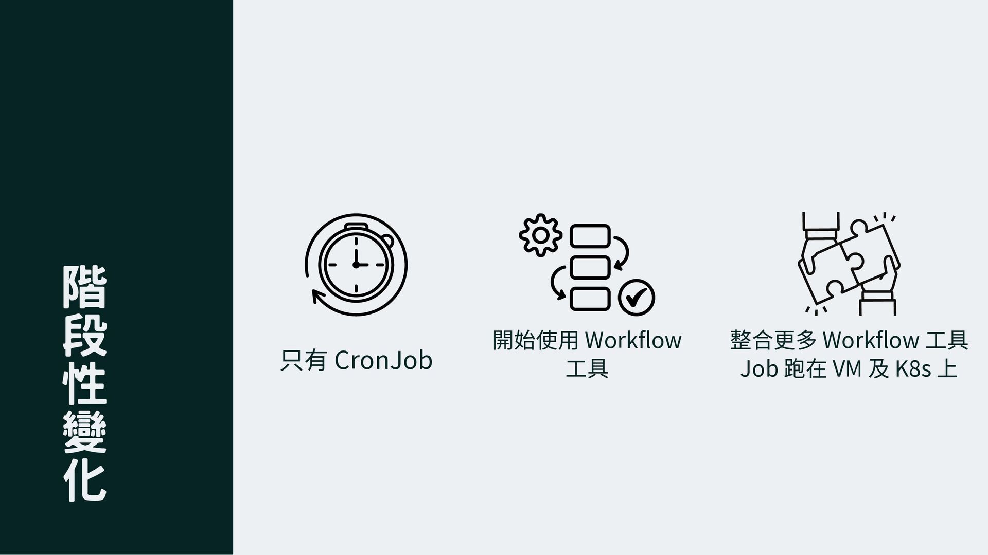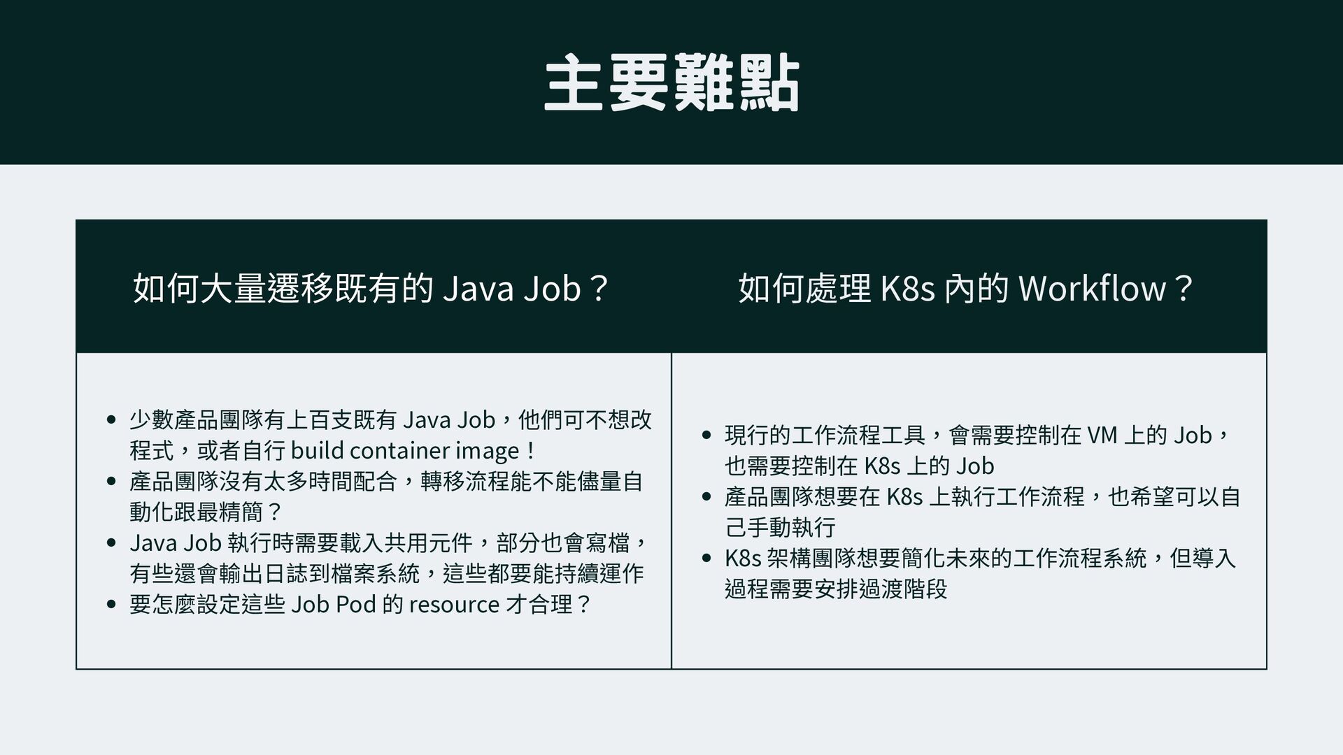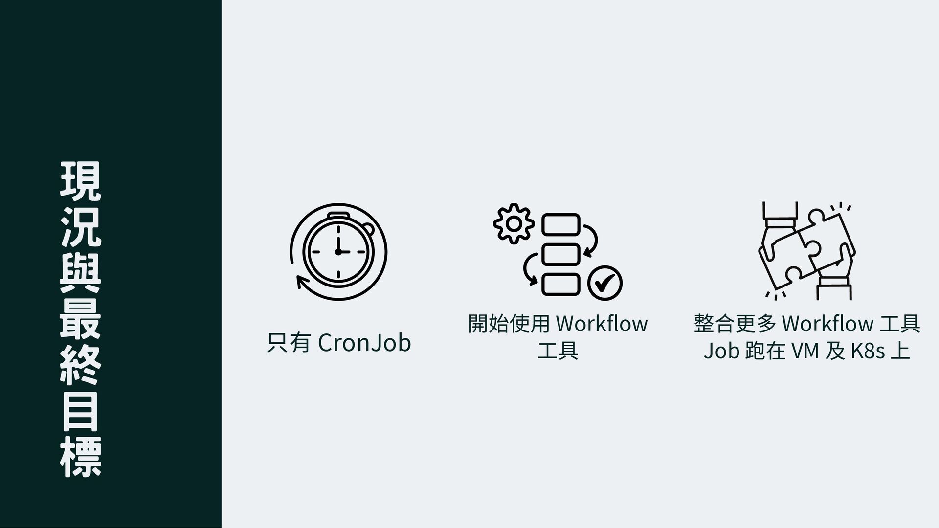本演講將分享 104 Kubernetes 團隊如何整合 AWS Step Functions、Argo Events、Argo Workflows 及 Rundeck 來運行關鍵業務工作流程,透過 Step Functions 為流程控制器,指揮運行在雲端與地端的多個工作流程工具(Argo Workflows、Rundeck)。