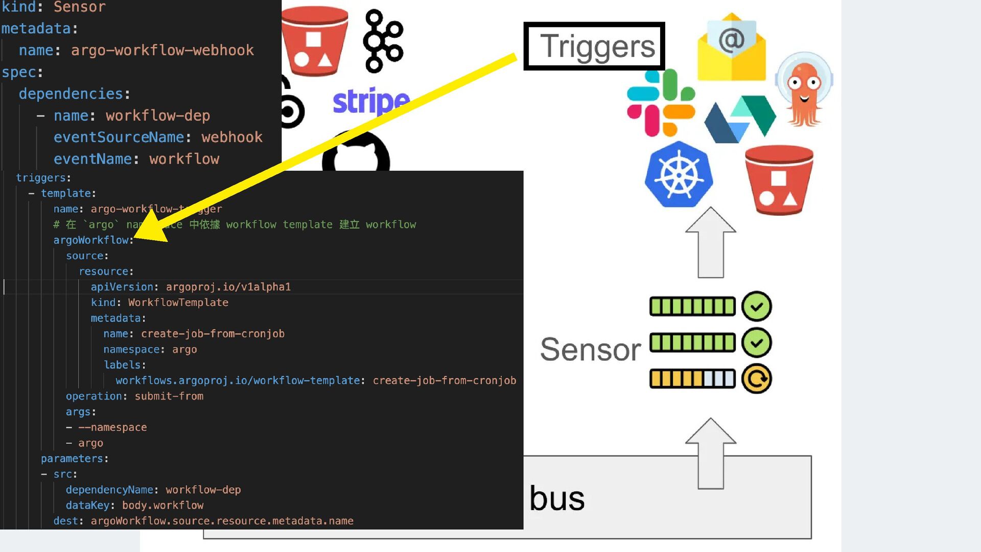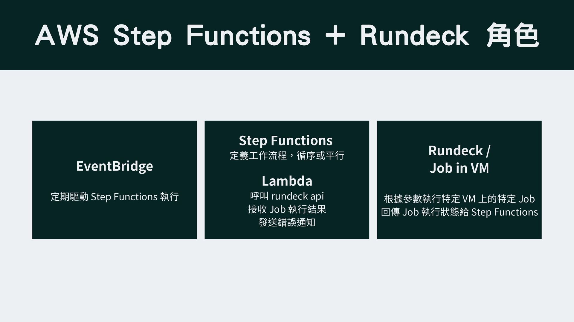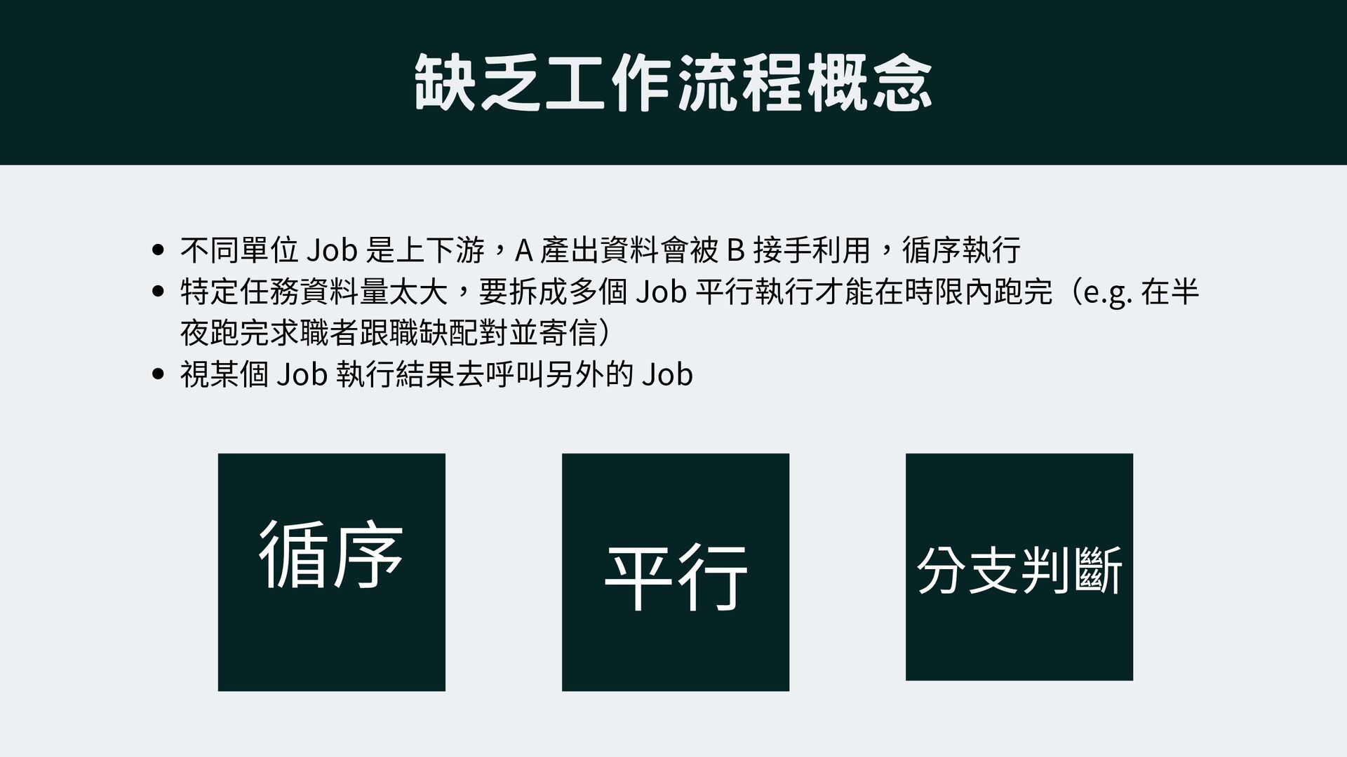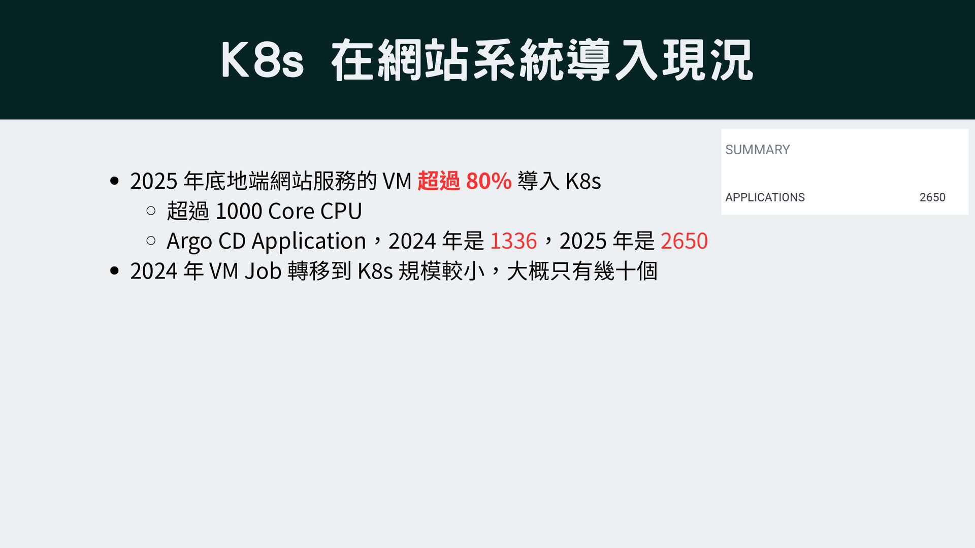 本演講將分享 104 Kubernetes 團隊如何整合 AWS Step Functions、Argo Events、Argo Workflows 及 Rundeck 來運行關鍵業務工作流程,透過 Step Functions 為流程控制器,指揮運行在雲端與地端的多個工作流程工具(Argo Workflows、Rundeck)。
