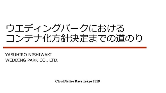 ウエディングパークにおける コンテナ化⽅針決定までの道のり YASUHIRO NISHIWAKI WEDDING PARK CO., LTD.