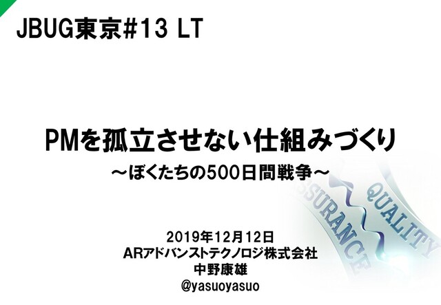約1年半自社(ARI)で取り組んできたことをJBUG東京でLTさせていただきました。プロマネというハードワークに挑むPM達を組織としてどう支えるかべきか?まだ道半ばですが同じ課題に悩む方のお役に立てれば幸いです。