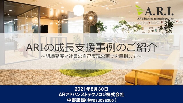 2021年8月に実施したオンラインセミナーのコンテンツです。 ARIにおける社員育成の事例をご紹介しています。