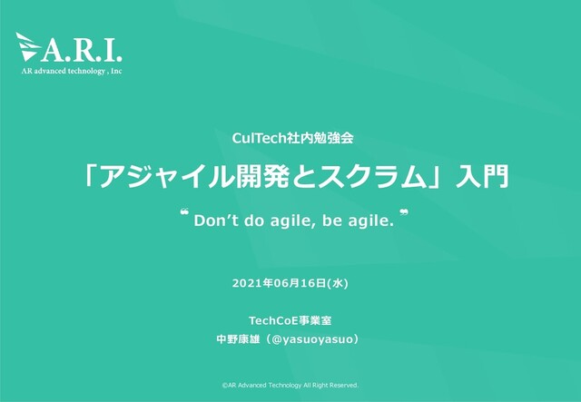 あるいは実践を手助けをする活動を通じて、 よりよい開発方法を見つけだそうとしている。 この活動を通して、私たちは以下の価値に至った。 プロセスやツールよりも個人と対話を、 包括的なドキュメントよりも動くソフトウェアを、 契約交渉よりも顧客との協調を、 計画に従うことよりも変化への対応を、 価値とする。すなわち、左記のことがらに価値があることを 認めながらも、私たちは右記のことがらにより価値をおく。 © 2001, 上記の著者たち この宣言は、この注意書きも含めた形で全文を含めることを条件に 自由にコピーしてよい。 Kent Beck Mike Beedle Arie van Bennekum Alistair Cockburn Ward Cunningham Martin Fowler James Grenning Jim Highsmith Andrew Hunt Ron Jeffries Jon Kern Brian Marick Robert C. Martin Steve Mellor Ken Schwaber Jeff Sutherland Dave Thomas
