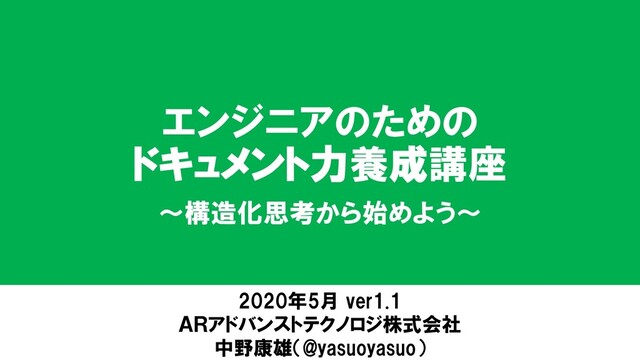 エンジニアに向けたドキュメント作成能力向上のための社内研修用のコンテンツを一部加工して公開しました。(2020/5/14:ver1.1 公開しました)