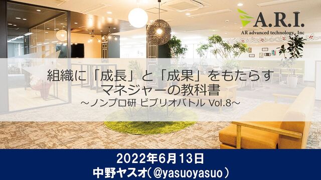 Copyright ©A.R.I. All Rights reserved. 1 組織に「成長」と「成果」をもたらす マネジャーの教科書 ~ノンプロ研 ビブリオバトル
