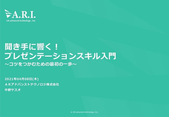 1 © AR advanced technology, Inc. 聞き手に響く! プレゼンテーションスキル入門 ~コツをつかむための最初の一歩~ 2021年04月08日(木)