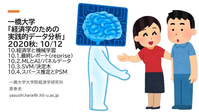 the Lasso, Journal of the Royal Statistical Society. Series B, 58, 1, pp. 267-288, https://www.jstor.org/stable/2346178 • 川野秀一(2019) スパース推定に基づく統計モデリング, HIAS Health ビッグデータ・ICT勉強会 • 川野秀一・松井秀俊・廣瀬慧 (2018) スパース推定法による統 計モデリング, 統計学 One Point • http://rcommanderdeigakutoukeikaiseki.com/propensity_sco re.html • https://www.randpy.tokyo/entry/python_propensity_score