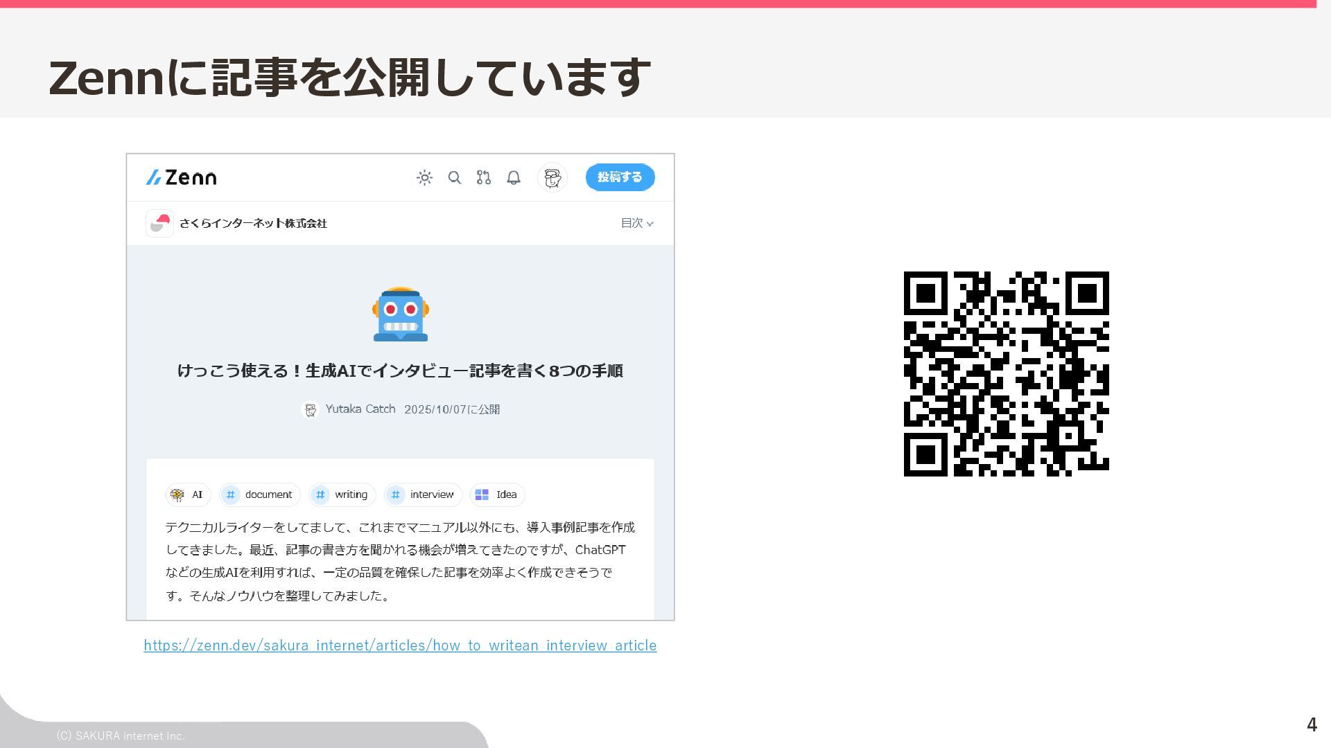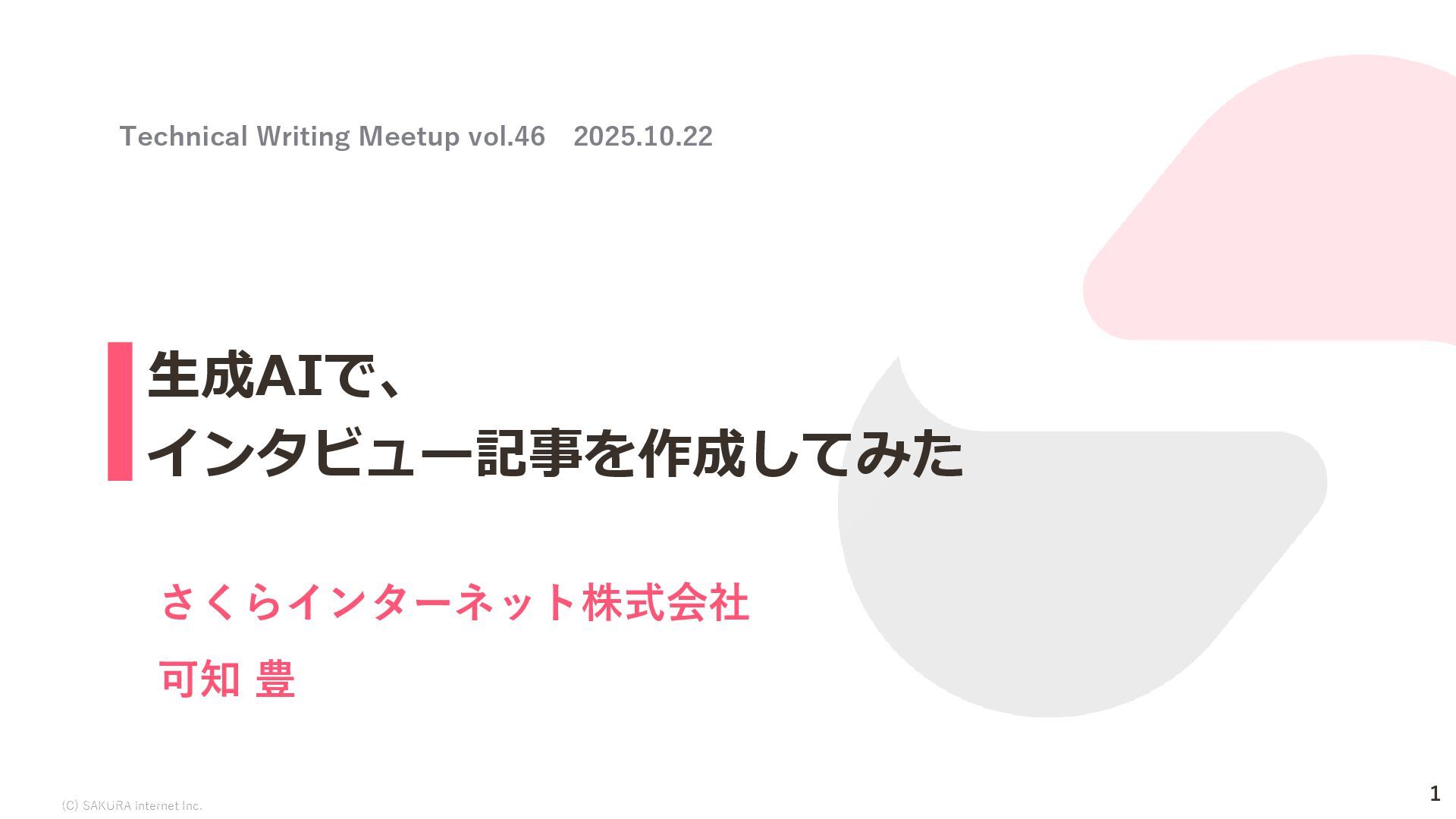 インタビュー記事を作成してみた さくらインターネット株式会社 可知 豊 Technical Writing Meetup vol.46 2025.10.22