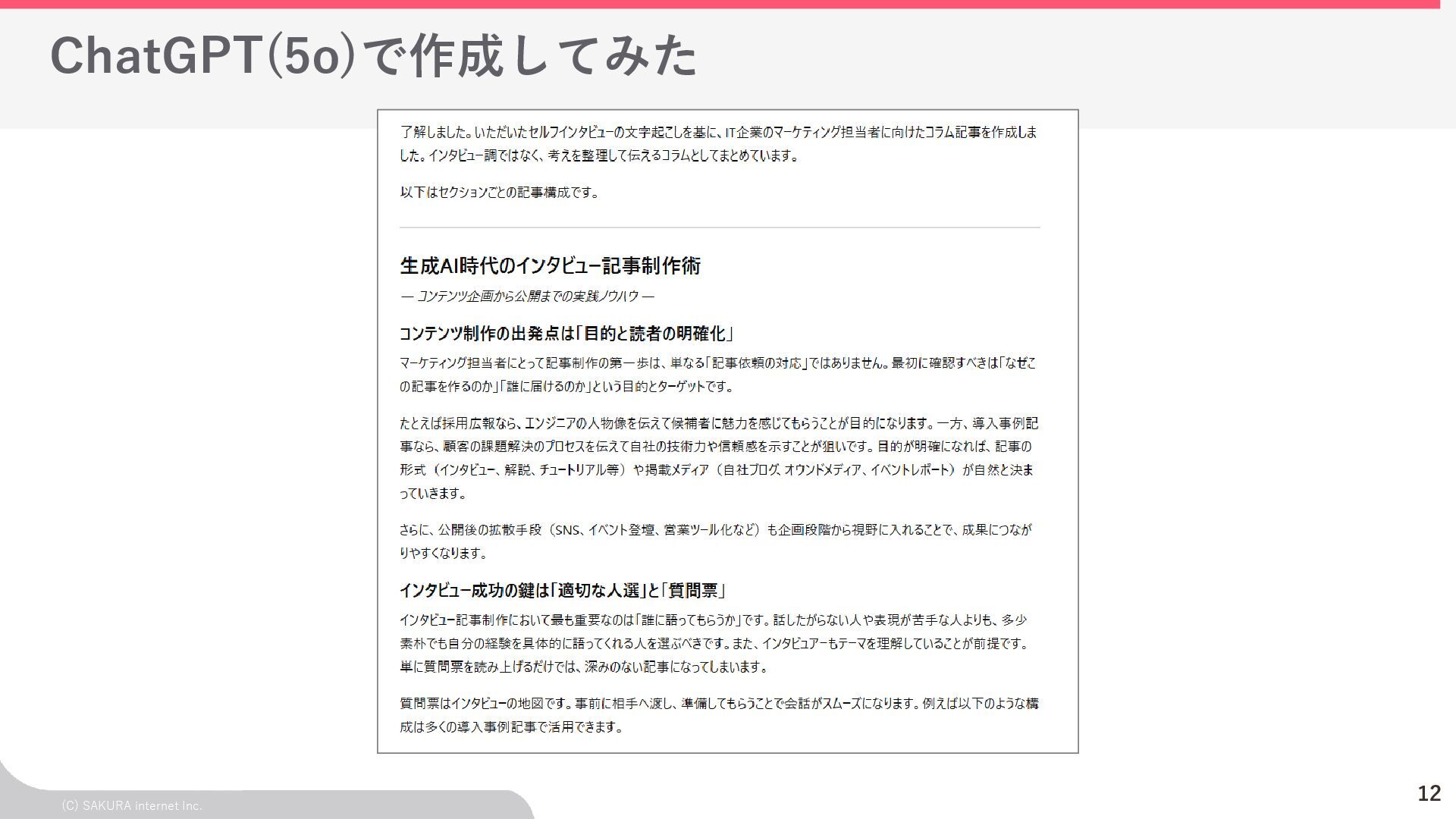 (C) SAKURA internet Inc. (C) SAKURA internet Inc. 12 ChatGPT(5o)で作成してみた